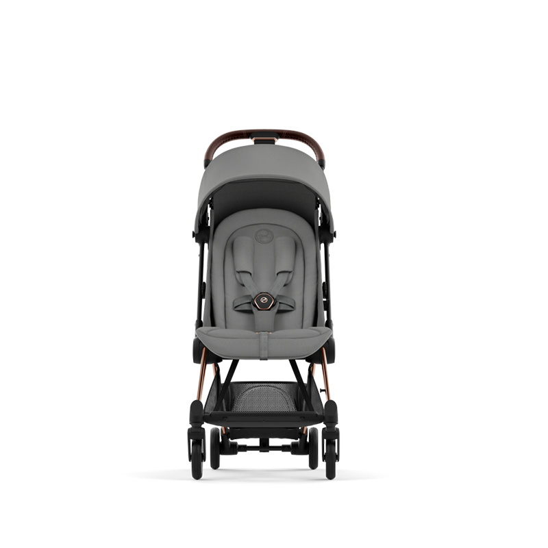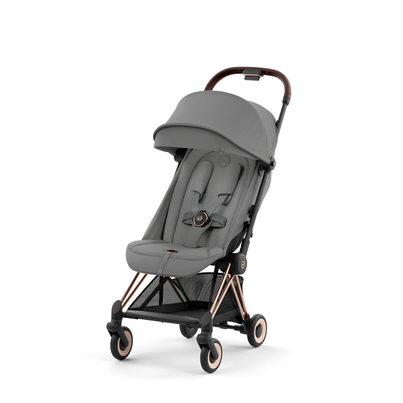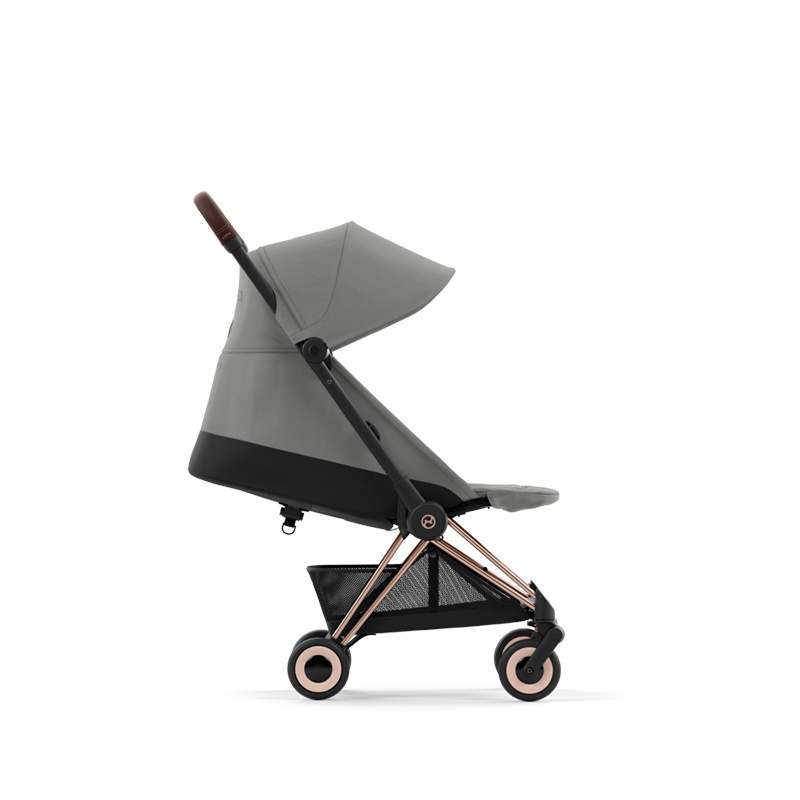 • Lekka i kompaktowa spacerówka Coÿa składana na płasko do bardzo kompaktowych rozmiarów. Rama Rosegold.