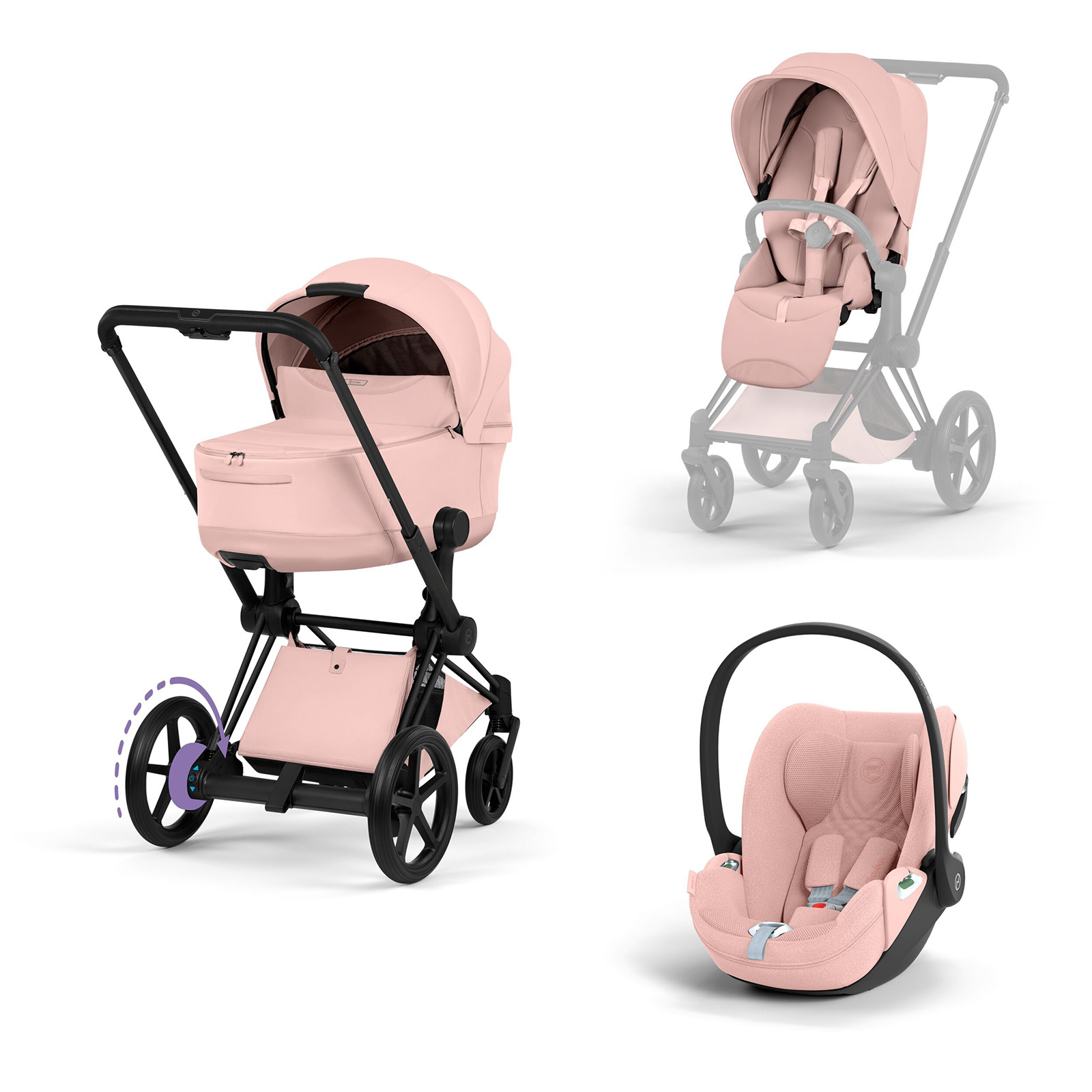 Cybex e-Priam 5.0 Matt Black Peach Pink zestaw 3w1 z fotelikiem Cloud T i-Size
