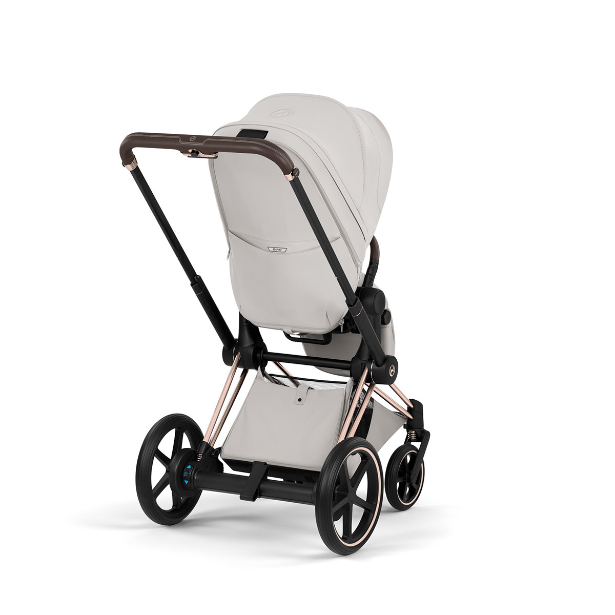 Rama e-Priam łączy klasyczny format wózka premium z technologią wspierającą codzienne prowadzenie. Elektryczne wspomaganie pomaga podczas jazdy pod górę i po nierównym terenie, a tryb kołysania pozwala automatycznie bujać wózek w przód i w tył po uruchomieniu funkcji w aplikacji. Dzięki temu e-Priam odpowiada na jedne z najczęstszych potrzeb klientów: łatwiejsze prowadzenie cięższego zestawu i możliwość uspokojenia dziecka bez ciągłego ręcznego kołysania.