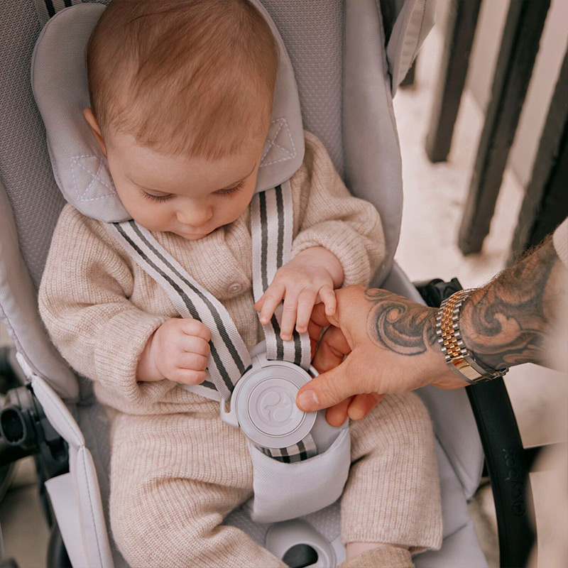 Siedzisko w wózku Eezy S Twist+2 jest obszerne i wygodne. Zapewnia dziecku ergonomiczną pozycję, a dzięki regulowanemu oparciu i podnóżkowi także wygodne miejsce do spania. Duża budka przeciwsłoneczna XXL wykonana jest z materiałów z filtrem UPF50+. Dodatkowy rozsuwany panel pozwala skuteczniej osłonić dziecko przed słońcem, deszczem lub wiatrem. Pasy wewnętrzne z miękkimi nakładkami działają w systemie jednego pociągnięcia, znacznie ułatwiając rodzicom bezpieczne wpinanie. W zestawie z wózkiem znajduje się pokryty ekoskórą, wypinany pałąk.