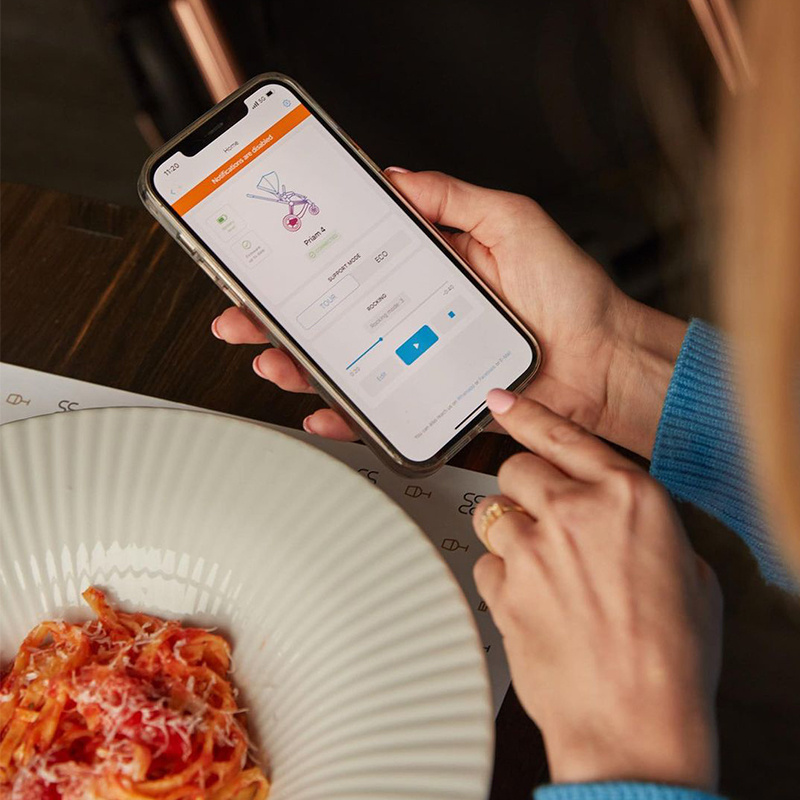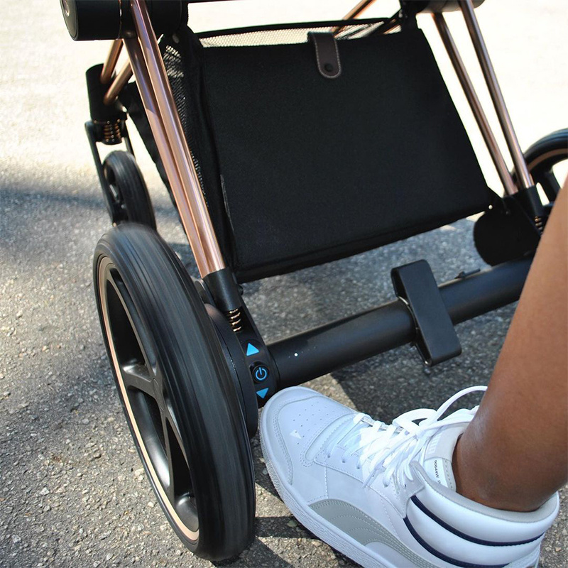 Stelaż do pierwszego wózka elektrycznego firmy Cybex jest bardzo funkcjonalny. Dzięki innowacyjnemu rozwiązaniu wspomaga rodziców w trakcie spacerów lub drzemki dziecka. Stelaż ePriam pozwala na łatwe wjeżdżanie na wzniesienia oraz zjeżdżanie z nich. Inteligentny mechanizm dostosowuje odpowiednie wsparcie jazdy po nierównym i wymagającym terenie. Dzięki nowej, bezpłatnej aplikacji CYBEX App możemy aktywować funkcję kołysania, kontrolować poziom wsparcia ze strony silników elektrycznych oraz sprawdzać stan baterii i oprogramowania sprzętowego.