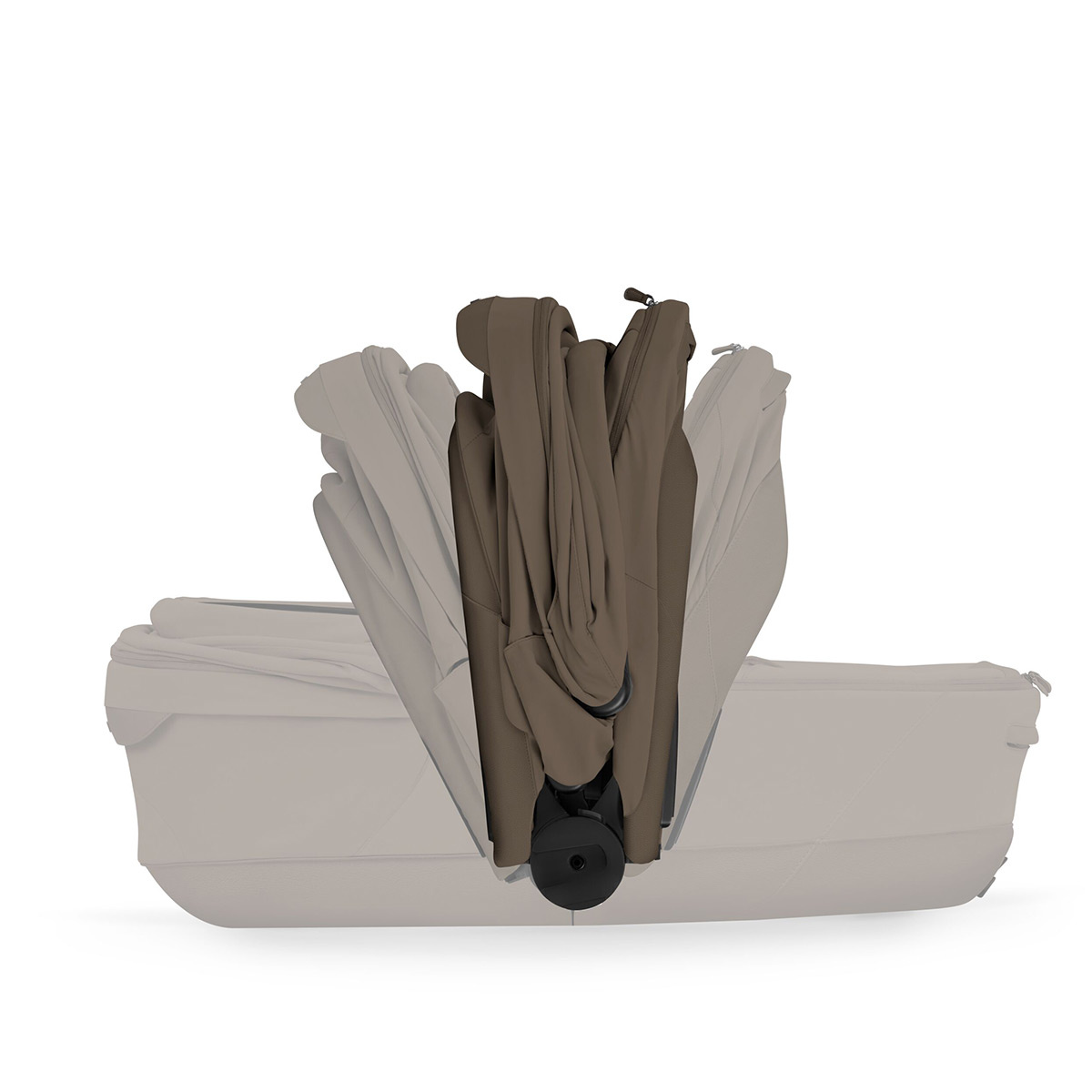 Jedną z najważniejszych cech tej gondoli jest możliwość złożenia do połowy rozmiaru, nawet gdy pozostaje zamocowana na ramie wózka. Po odpięciu od stelaża można złożyć ją do formatu zgodnego z wymiarami bagażu podręcznego. Wygodne przenoszenie ułatwia zintegrowany uchwyt w budce oraz dodatkowy uchwyt powstający po złożeniu.