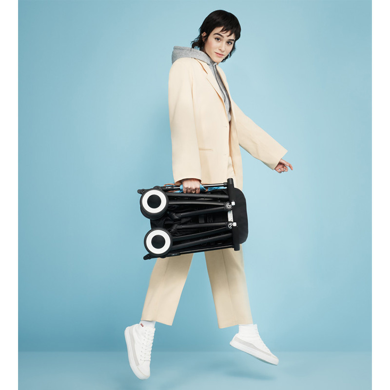 Cybex Libelle to ultralekki wózek spacerowy stworzony do podróży. Składa się do 32 × 20 × 48 cm, więc mieści się w małym bagażniku i jako bagaż podręczny wielu linii. Dziecko ma wygodę dzięki bezstopniowemu oparciu, regulowanemu podnóżkowi i osłonnej budce.