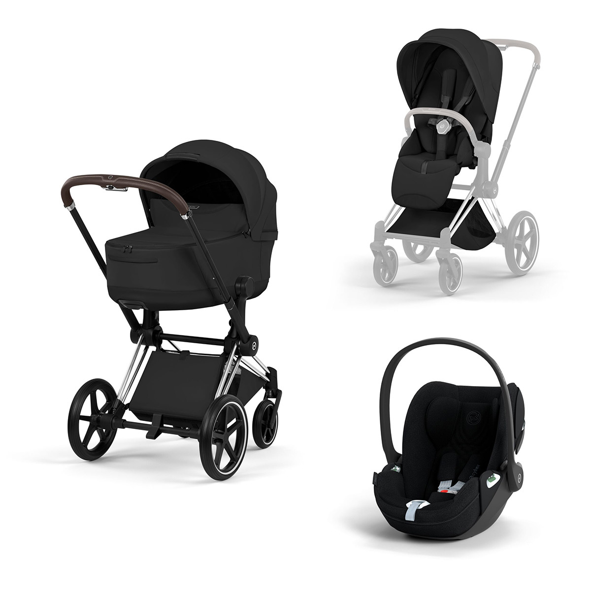 - Cybex Priam 5.0 + Cloud T i-Size to luksusowy zestaw 3w1 do 22 kg, stworzony dla rodziców ceniących design i mobilność. Połączenie gondoli, siedziska przód/tył oraz fotelika ułatwia płynne przejście z auta na spacer.