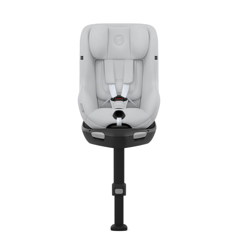 Cybex Sirona G i-Size, obrotowy fotelik dla najmłodszych. Przeznaczony jest dla dzieci o wzroście od 61 do 105 cm i maksymalnie 20 kg wagi. Montowany jest wyłącznie na dodatkowej bazie Cybex Base G (do kupienia oddzielnie) za pomocą systemu isofix i nogi wspierającej. Dzięki możliwości obrotu 360º wkładanie i wyjmowanie dziecka z fotela jest proste i szybkie. Dziecko może być przewożone tyłem do kierunku jazdy przez cały okres użytkowania lub przodem od 76 do 105 cm wzrostu. Za bezpieczeństwo w podróży odpowiada skorupa pochłaniająca energię uderzenia oraz udoskonalony, zintegrowany system ochrony bocznej. Specjalnie wyprofilowany zagłówek utrzymuje głowę dziecka w chronionej strefie.