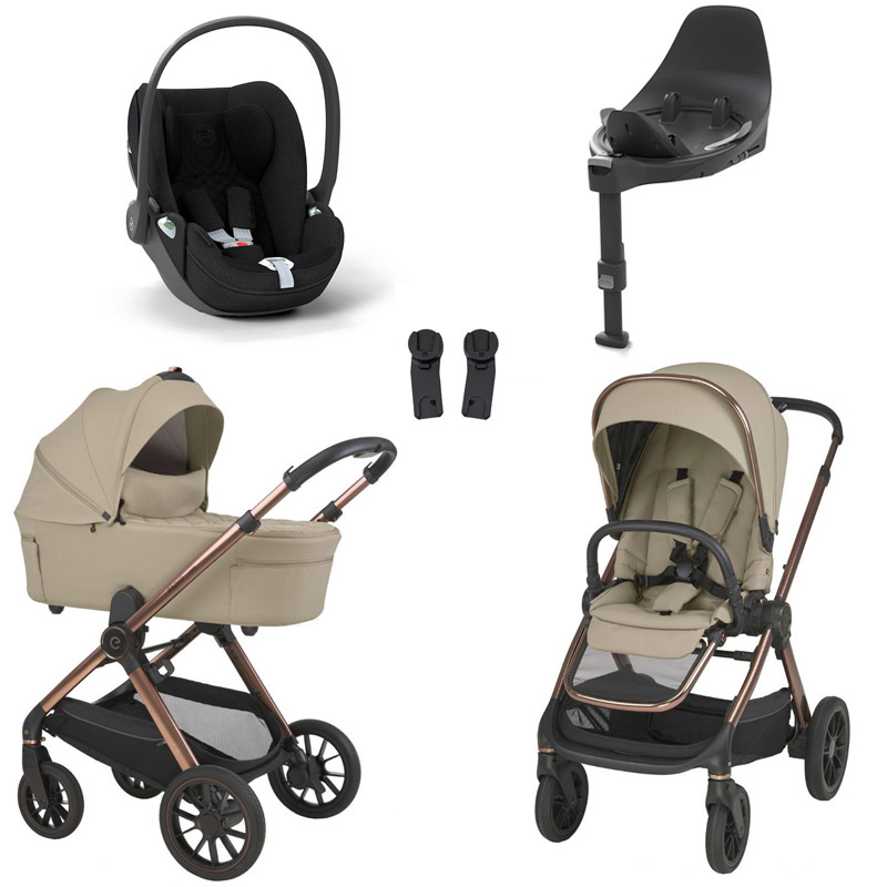 Zestaw 4w1, wózek Espiro Code z fotelikiem Cybex Cloud T Plus, bazą Base T i adapterami niezbędnymi do zamontowania fotelika na stelażu wózka.