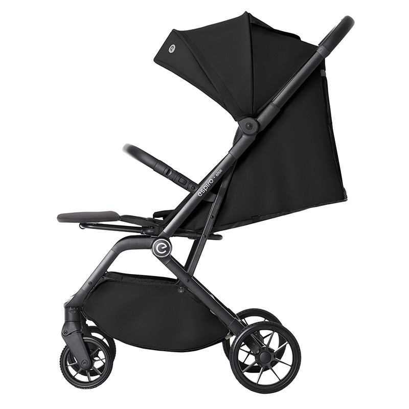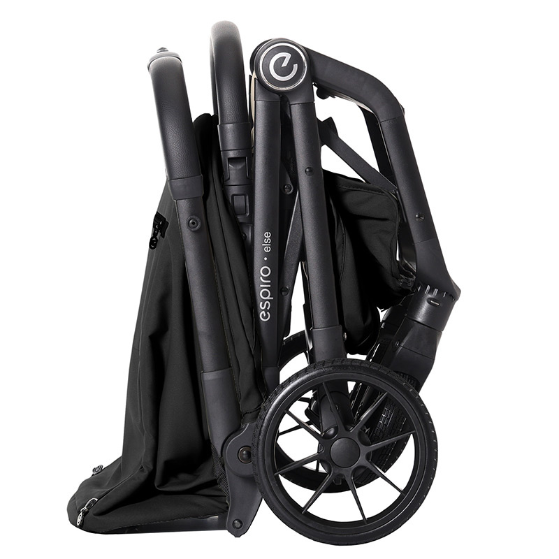 Espiro Else, miejski wózek spacerowy. Przeznaczony jest dla dzieci do maksymalnej wagi 22 kg. Stelaż składa się automatycznie na płasko za pomocą jednej ręki, a po złożeniu stoi samodzielnie. Kompaktowe wymiary po złożeniu i niewielka waga (7,5kg) umożliwiają przewożenie niemal w każdym bagażniku i przechowywanie w dowolnym miejscu w domu. Specjalny uchwyt pozwala na proste przenoszenie złożonego wózka. Piankowe koła o średnicy 16 i 20 cm zapewniają komfort prowadzenia i wyjątkową zwrotność. Funkcjonalny i obszerny kosz pomieści akcesoria niezbędne na spacerze. Łatwy w obsłudze hamulec umieszczony jest na tylnej osi i nie niszczy butów.