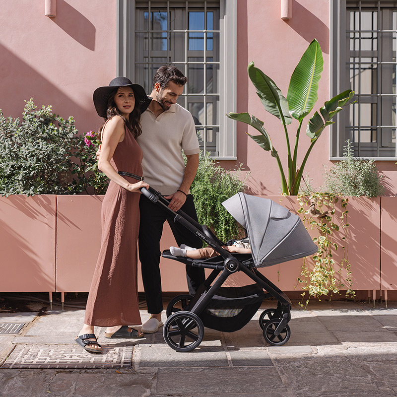 Siedzisko spacerowe jest dwukierunkowe i waży zaledwie 4 kg. Oparcie rozkładane jest do pozycji leżącej, zapewni odpowiedni komfort w trakcie wypoczynku. Podnóżek jest regulowany i wydłuża dziecku łączną powierzchnię do spania. Duża budka posiada dodatkowy panel powiększający oraz okienko wentylacyjne, przez które można zajrzeć co dzieje się u dziecka. W budkę wbudowana jest moskitiera, którą zawsze można wyjąć w zależności od potrzeb. 5-punktowe pasy z magnetyczną klamrą  i obrotowy pałąk znacznie ułatwiają wpinanie dziecka. Pojemny, zamykany na suwak kosz pomieści codzienne zakupy i akcesoria.