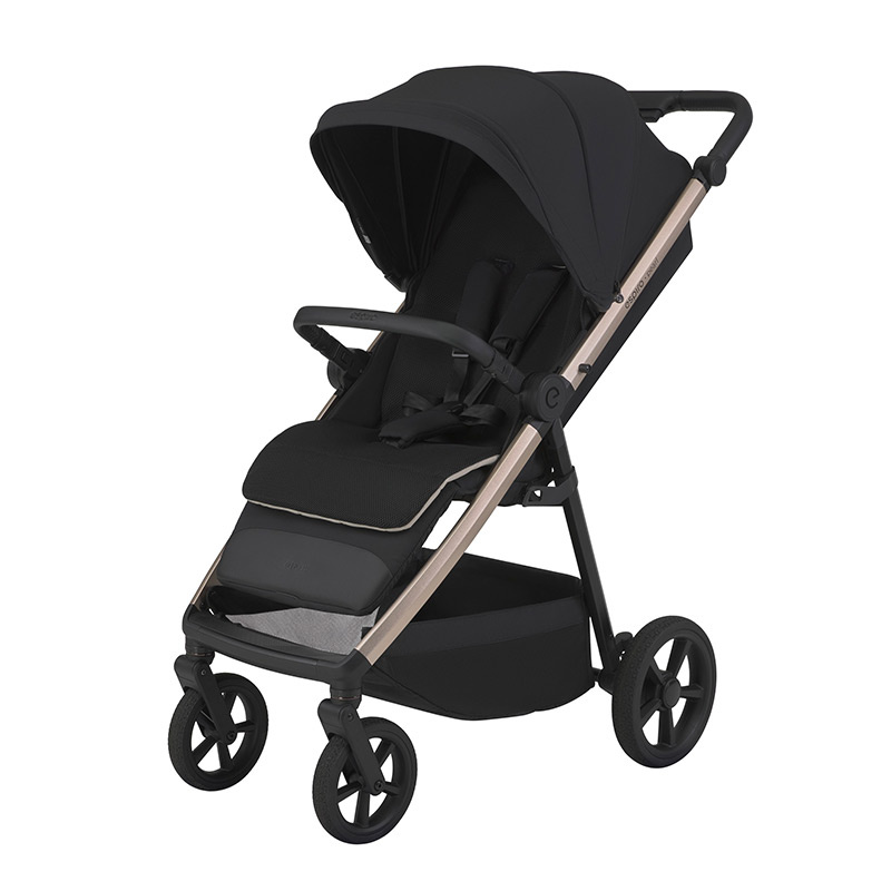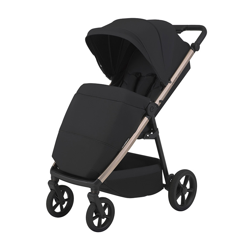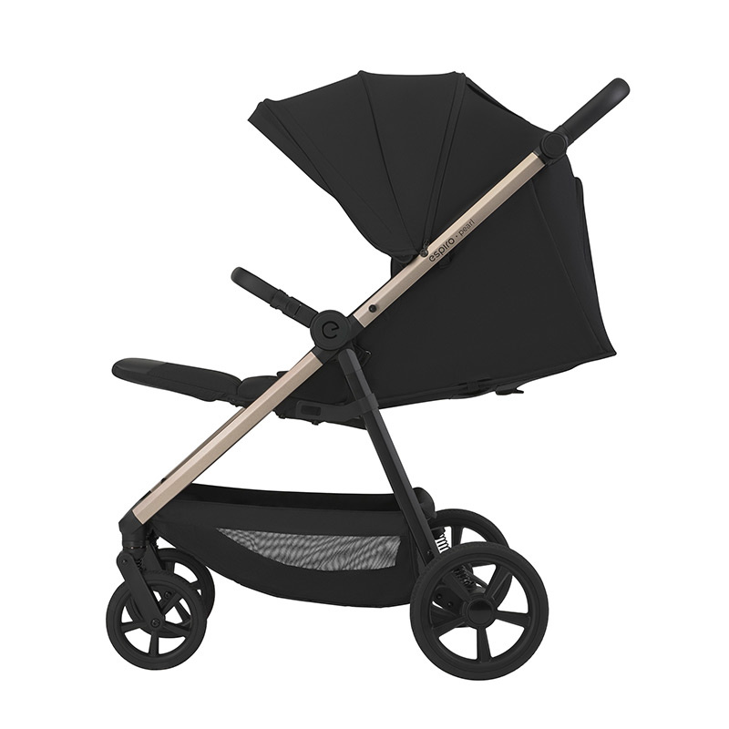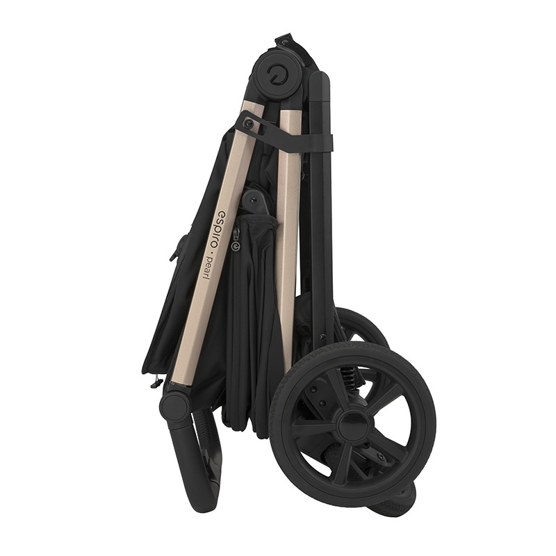 Espiro Pearl, elegancki wózek wózek spacerowy na każdy teren. Przeznaczony jest dla dzieci do maksymalnej wagi 22 kg. Stelaż składa się szybko na płasko za pomocą jednej ręki, a po złożeniu stoi samodzielnie ułatwiając przechowywanie. Specjalny uchwyt pozwala na proste przenoszenie złożonego wózka. Żelowe, bieżnikowane koła o średnicy 17 i 24 cm zapewniają komfort prowadzenia i wyjątkową zwrotność. Doskonała amortyzacja, zarówno na tylne i przednie koła zapewniają dziecku komfort, a rodzicom łatwość prowadzenia. Funkcjonalny i obszerny kosz pomieści akcesoria niezbędne na spacerze. Łatwy w obsłudze hamulec umieszczony jest na tylnej osi i nie niszczy butów. Pełna rączka pokryta ekoskórą jest regulowana w 3 pozycjach.