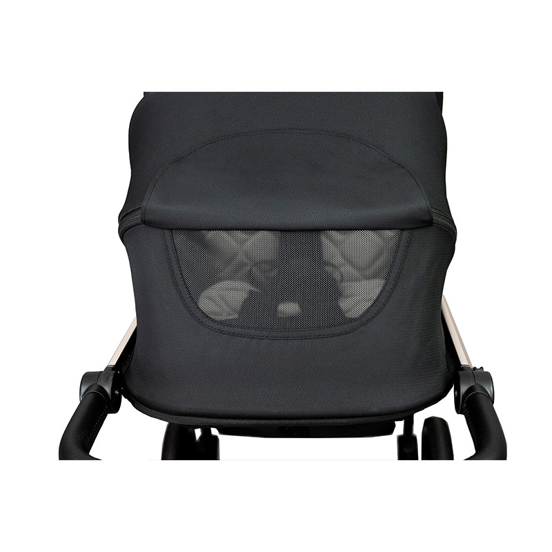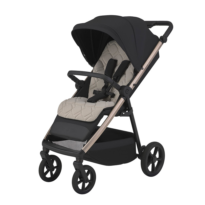Espiro Pearl posiada wyjątkowo duże i komfortowe siedzisko z płynną regulacją oparcia do pozycji leżącej. W połączeniu z regulowanym podnóżkiem zapewnia dziecku komfortową i dużą przestrzeń do odpoczynku i długości 95 cm. Wyposażone jest w pięciopunktowe pasy bezpieczeństwa z miękkimi nakładkami i magnetyczną klamrą. Budka wykonana jest z wysokiej jakości materiałów filtrem UV50+. W pogodne, słoneczne dni również zapewnimy maksimum komfortu. Budka posiada dodatkowy, rozsuwany jednym ruchem daszek. Na jej szczycie znajduje się odsłaniane okienko do obserwacji dziecka. O cyrkulację powietrza zadba zamykany suwakiem panel z siateczki.