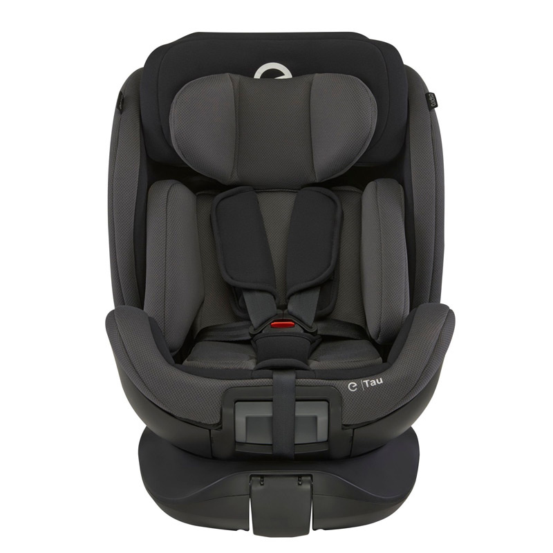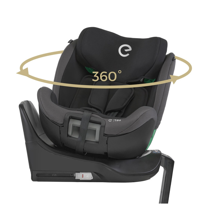 Fotelik samochodowy Espiro Tau. Przeznaczony jest dla dziecka od 40 do 150 cm wzrostu. Zintegrowana, obrotowa baza pozwala na łatwiejszą obsługę i ułatwia wkładanie i wyjmowanie dziecka. Montowany jest w samochodzie w zależności od wzrostu dziecka i kierunku jazdy. W początkowej fazie (40 - 105 cm) fotel montowany jest tyłem za pomocą systemu isofix i nogi wspierającej. Dla najmłodszych ( do 60 cm) przeznaczona jest dodatkowa wkładka wypłycająca, która zapewnia bezpieczeństwo i komfort w podróży. Po przekroczeniu przez dziecko 76 cm wzrostu można obrócić fotel przodem do kierunku jazdy. W drugiej fazie przewożenia (100-150 cm) fotel montowany jest przodem do kierunku jazdy za pomocą systemu isofix i 3-punktowego pasa samochodowego lub samym pasem.