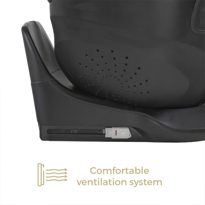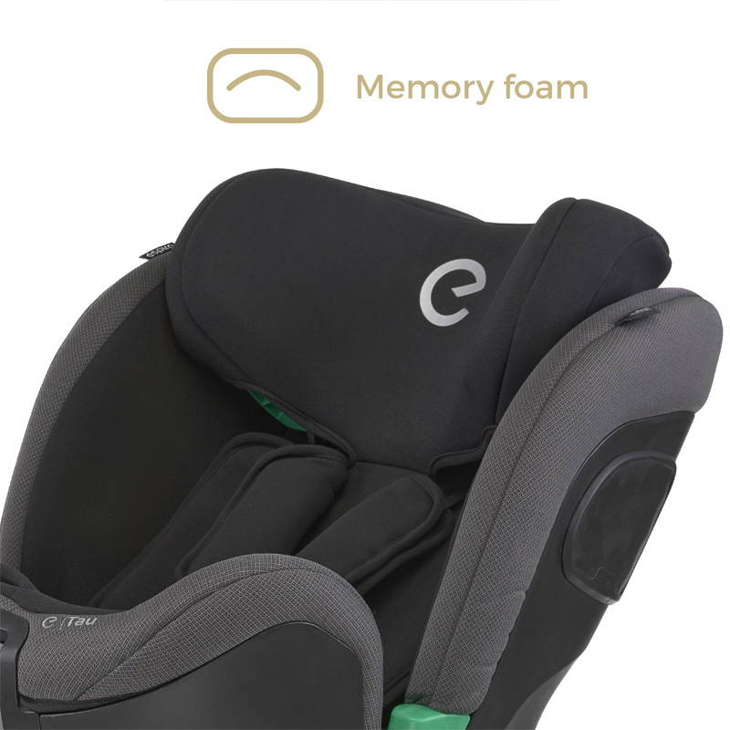 Zagłówek fotelika Tau jest regulowany w 10 pozycjach, co pozwoli dłużej z niego korzystać i dostosować fotel do aktualnego wzrostu dziecka. W jego budowie zastosowano wysokiej jakości piankę z pamięcią, która zwiększa komfort i absorbuje siłę uderzenia w przypadku kolizji. 5-stopniowa regulacja kąta nachylenia (w montażu z wewnętrznymi pasami) zapewnia dziecku komfort w podróży a także podczas odpoczynku. Dolna część konstrukcji fotela Tau posiada specjalne otwory wentylacyjne, zapewniające odpowiednią cyrkulację powietrza w gorące dni. Tapicerka wykonana z wysokiej jakości materiałów jest zdejmowana i nadaje się do prania.