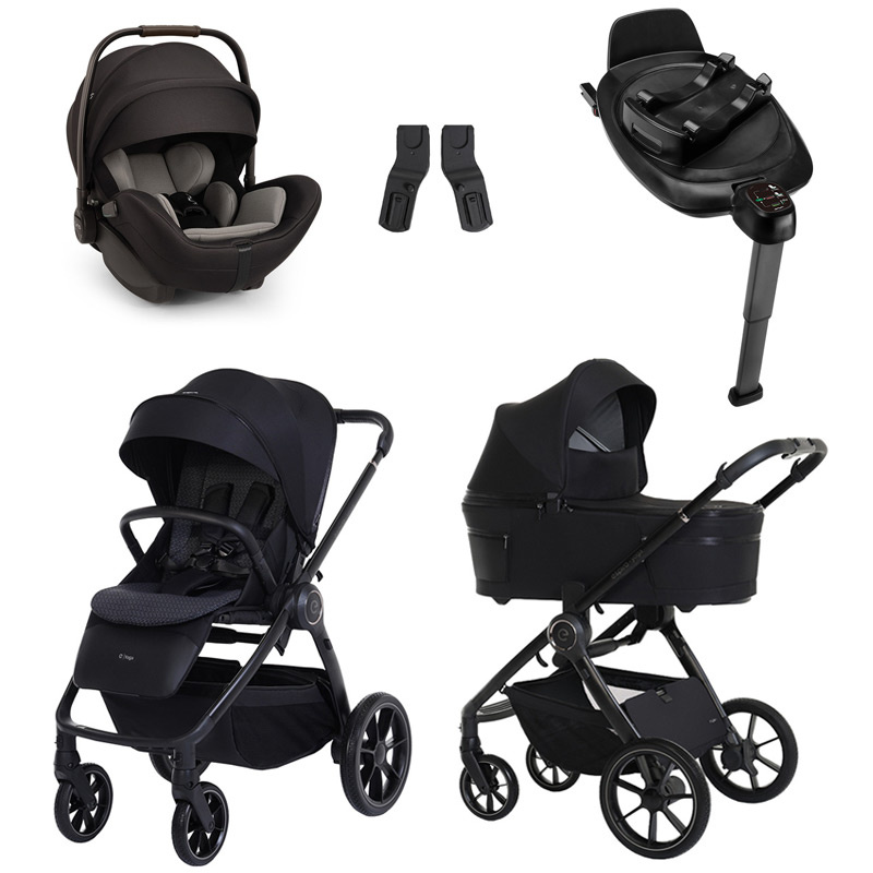 Zestaw Espiro wózek Yoga z fotelikiem Nuna Arra Flex, bazą Nuna Base Next i adapterami niezbędnymi do zamontowania fotelika na stelażu wózka.