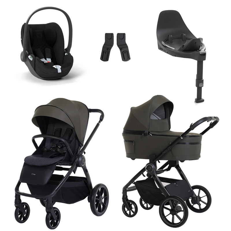 Zestaw Espiro wózek Yoga z fotelikiem Cybex Cloud T Plus, bazą isofix Base T i adapterami niezbędnymi do zamontowania fotelika na stelażu wózka.