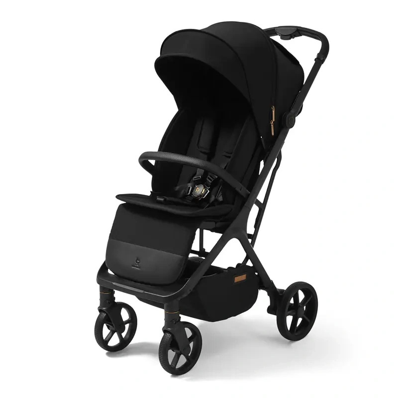 Siedzisko oferuje kąt niemal 90° względem oparcia, co sprzyja naturalnej i ergonomicznej pozycji siedzącej. Jednocześnie całe siedzisko wraz z oparciem jest delikatnie odchylone do tyłu, dzięki czemu maluch siedzi stabilnie i nie zsuwa się do przodu. Dodatkowym wsparciem jest dedykowana wkładka, która otula dziecko i zwiększa komfort podróżowania. Spacerówka łączy lekką konstrukcję z pełnowymiarowym, wygodnym siedziskiem oraz pełną regulacją oparcia i podnóżka. Dzięki temu dziecko może podróżować zarówno w pozycji siedzącej, jak i całkowicie leżącej, idealnej na drzemkę.