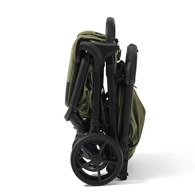 Siedzisko oferuje kąt niemal 90° względem oparcia, co sprzyja naturalnej i ergonomicznej pozycji siedzącej. Jednocześnie całe siedzisko wraz z oparciem jest delikatnie odchylone do tyłu, dzięki czemu maluch siedzi stabilnie i nie zsuwa się do przodu. Dodatkowym wsparciem jest dedykowana wkładka, która otula dziecko i zwiększa komfort podróżowania. Spacerówka łączy lekką konstrukcję z pełnowymiarowym, wygodnym siedziskiem oraz pełną regulacją oparcia i podnóżka. Dzięki temu dziecko może podróżować zarówno w pozycji siedzącej, jak i całkowicie leżącej, idealnej na drzemkę.