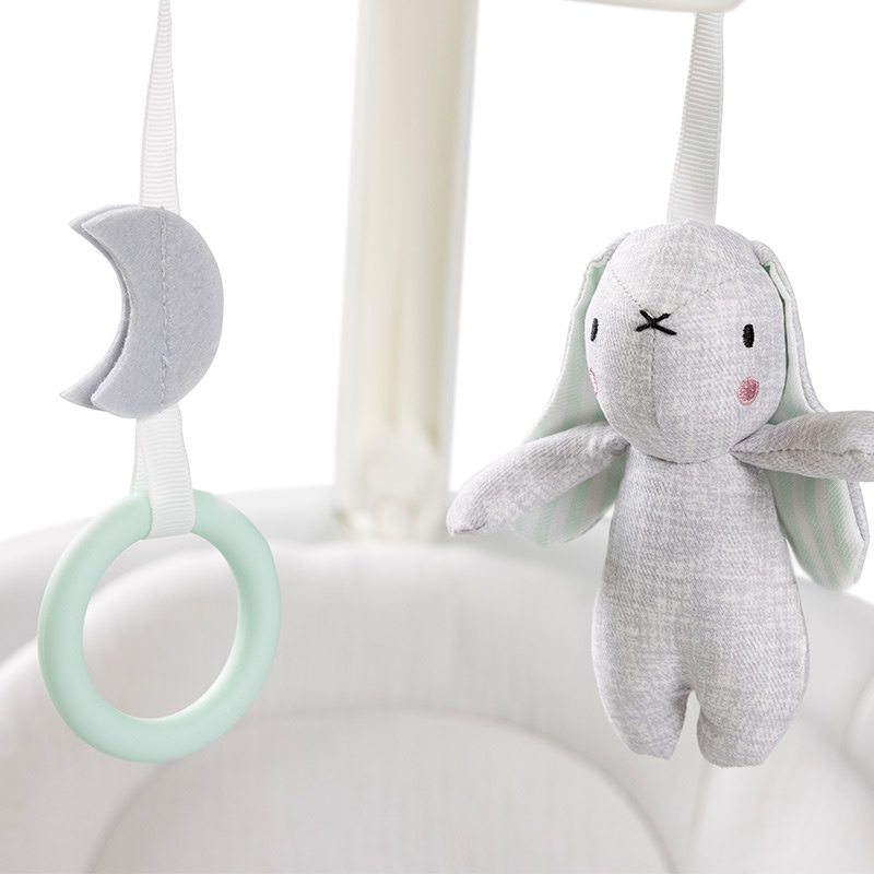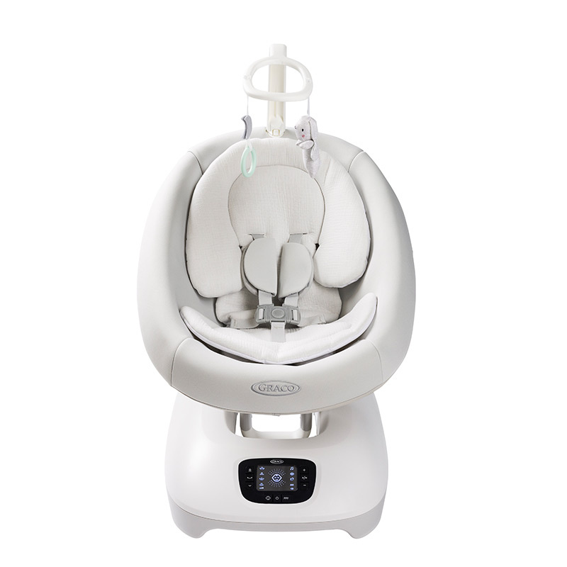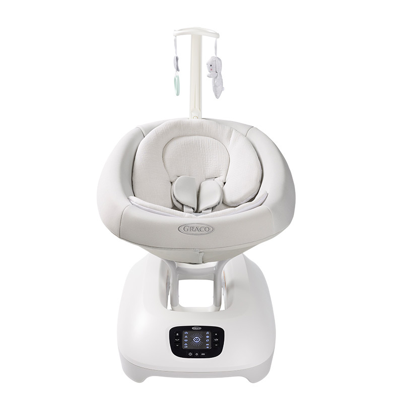 Graco Eluma Sway, innowacyjna huśtawka elektryczna. Przeznaczona jest dla dzieci od około 6 miesiąca życia do osiągnięcia maksymalnej wagi 9 kg. Zapewnia dziecku komfortowe i bezpieczne miejsce do odpoczynku, a rodzicom chwilę wytchnienia. Dzięki funkcji Cry-Detection Technology automatycznie uspokaja dziecko, gdy tylko zajdzie taka potrzeba. Wyposażona w delikatny ruch kołysania na boki, uspokaja i wycisza dziecko, przypominając mu naturalne bujanie w ramionach. Huśtawka Eluma Sway oferuje 3 poziomy prędkości, co pozwala dopasować rytm bujania do potrzeb dziecka. W połączeniu z 3 poziomami kąta nachylenia siedziska, 4 kierunkami kołysania i 2 poziomami wibracji oferuje bardzo duże możliwości personalizacji całego urządzenia do potrzeb dziecka. Dodatkowo posiada funkcję odtwarzania kojących melodii i dźwięków natury, które pomagają w zasypianiu. Miękkie, wygodne siedzisko z wyjmowaną wkładką dla niemowląt zapewnia właściwe podparcie i komfort już od pierwszych dni życia. Dzięki 5-punktowym pasom bezpieczeństwa i solidnej konstrukcji, Eluma Sway gwarantuje dziecku pełną ochronę podczas odpoczynku. Kompaktowa forma i możliwość łatwego składania sprawiają, że huśtawka idealnie sprawdzi się zarówno w domu, jak i podczas wyjazdów. W zestawie z huśtawką znajduje się pałąk z miękkimi zawieszkami.