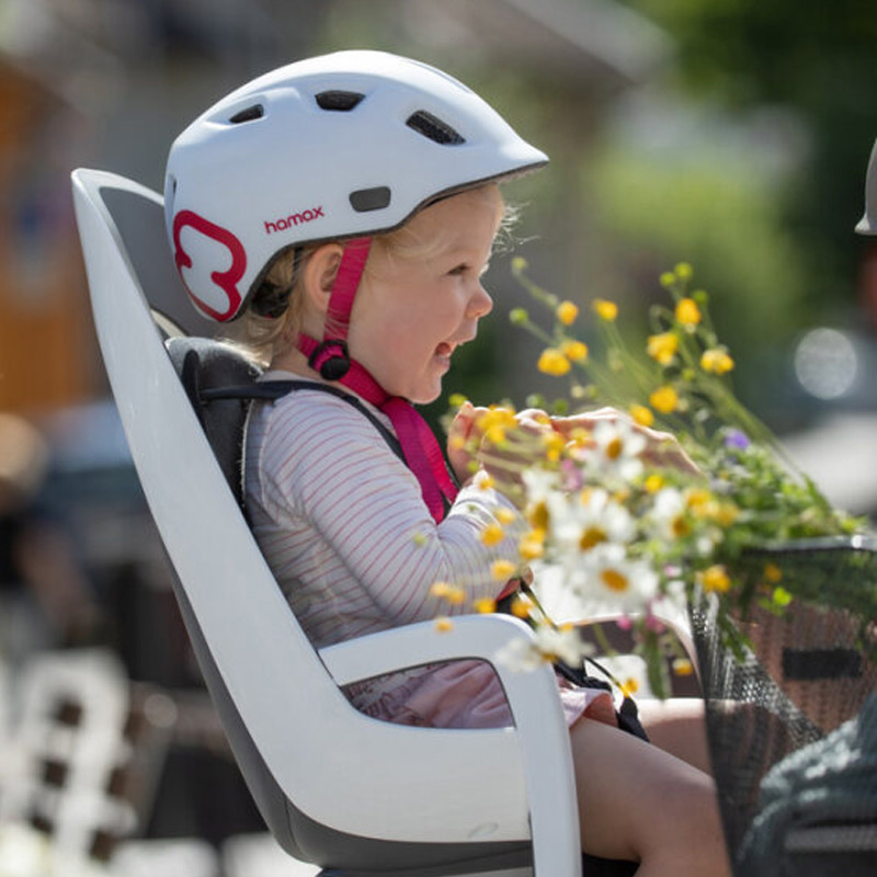 Hamax Caress, fotelik rowerowy zapewniający komfort, bezpieczeństwo i nowoczesne rozwiązania. To model, który idealnie sprawdzi się podczas wspólnych wycieczek, oferując dziecku wygodę i ochronę na najwyższym poziomie. Montowany jest bezpośrednio na ramie rowerowej (28-40 mm) szybko i łatwo za pomocą 4 śrub i specjalnego zacisku. Przeznaczony jest dla dzieci od około 9 miesięcy (trzymanie głowy pionowo bez wsparcia) do maksymalnej wagi 22 kg. Solidne, stalowe zawieszenie oparte na podwójnych belkach skutecznie amortyzuje wstrząsy i chroni delikatny kręgosłup dziecka nawet podczas jazdy po nierównym terenie. Fotelik Hamax Caress ma możliwość regulacji oparcia jednym ruchem do 20 stopni, zapewniając dziecku wygodną pozycję podczas odpoczynku lub drzemki w czasie jazdy. Dodatkowo w tylnej części oparcia znajduje się specjalne wgłębienie, które pozwala komfortowo oprzeć głowę nawet w kasku, bez ryzyka jej wypychania do przodu.