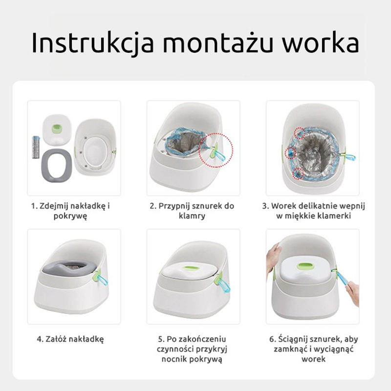 Ines&John nocnik dziecięcy Premium. Wysoka jakość wykonania i unikalny design to jego znak rozpoznawczy. Łatwy w użyciu i funkcjonalny produkt, ułatwiający naukę korzystania z toalety. Przeznaczony dla dzieci do 30 kg wagi. Ergonomiczna konstrukcja zapewnia dziecku komfort a solidne wykończenie z antypoślizgową podstawą bezpieczeństwo. Miękka nakładka zapewnia dziecku komfort w trakcie korzystania z nocnika. Wyjmowany wkład zapewni szybkie i skuteczne opróżnianie. Można go używać ze specjalnym workiem lub bez. Po zakończeniu czynności całość przykrywamy praktyczną pokrywą z uchwytem. Ergonomiczne, wysokie oparcie wspiera ułożenie pleców, jednocześnie nie ograniczając ruchów dziecka. Wysoka przednia część wkładki zabezpiecza podłogę przed rozbryzgami.