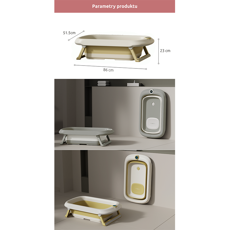 Ines&John składana wanienka kąpielowa z termometrem magnetycznym Olive