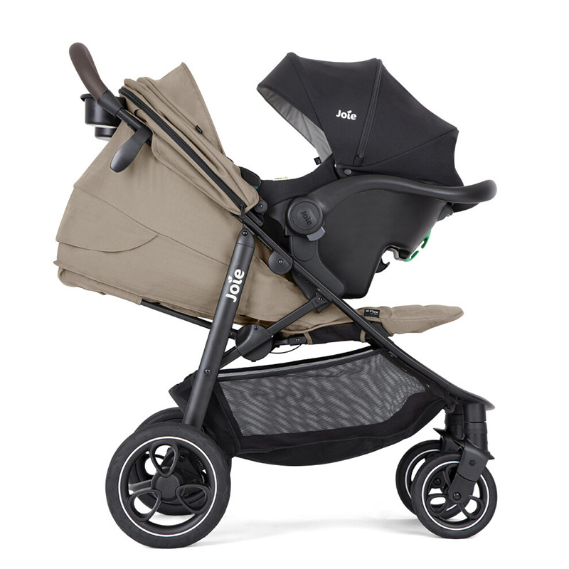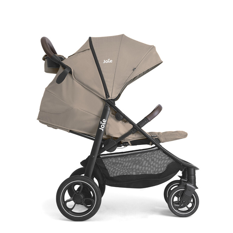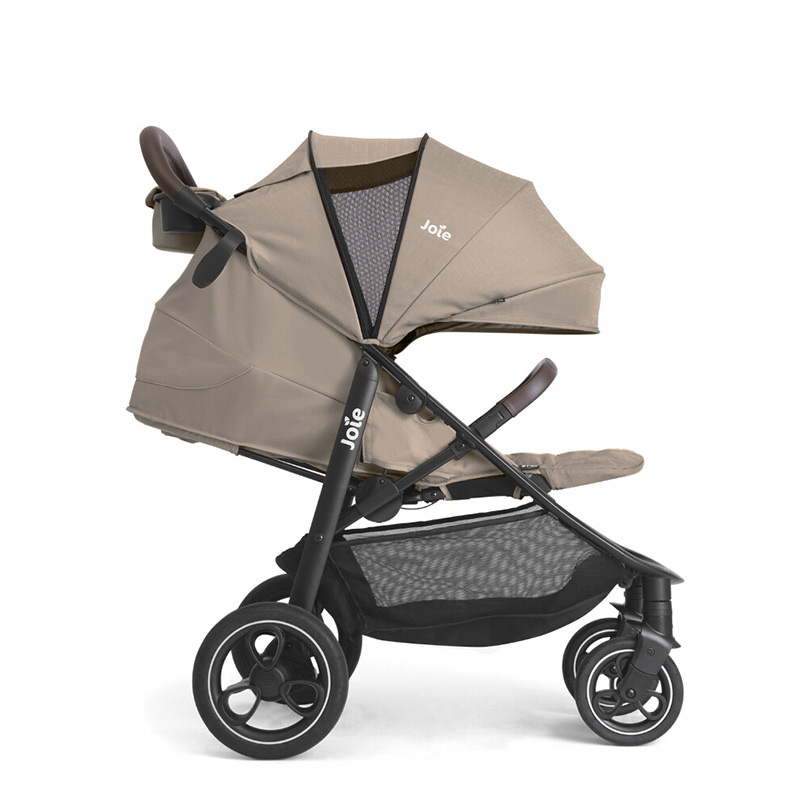 • Joie Litetrax Pro – spacerówka od urodzenia do 22 kg z podwójną amortyzacją (koła + siedzisko Flex) i kołami PunctureProof. Składanie jedną ręką do pozycji wolnostojącej. Budka UPF50+, kosz 4,5 kg.