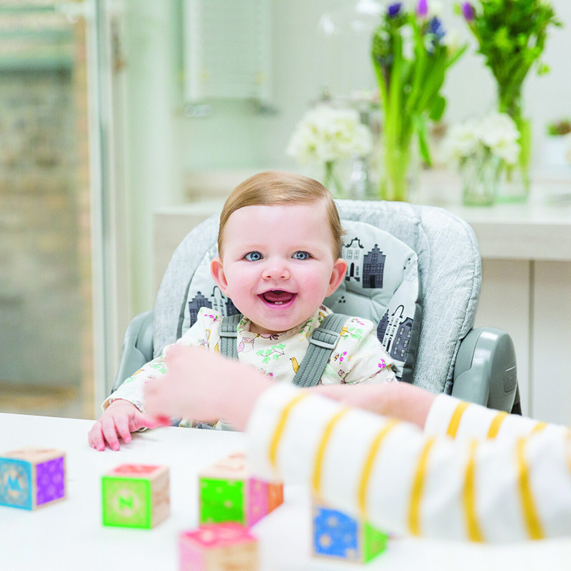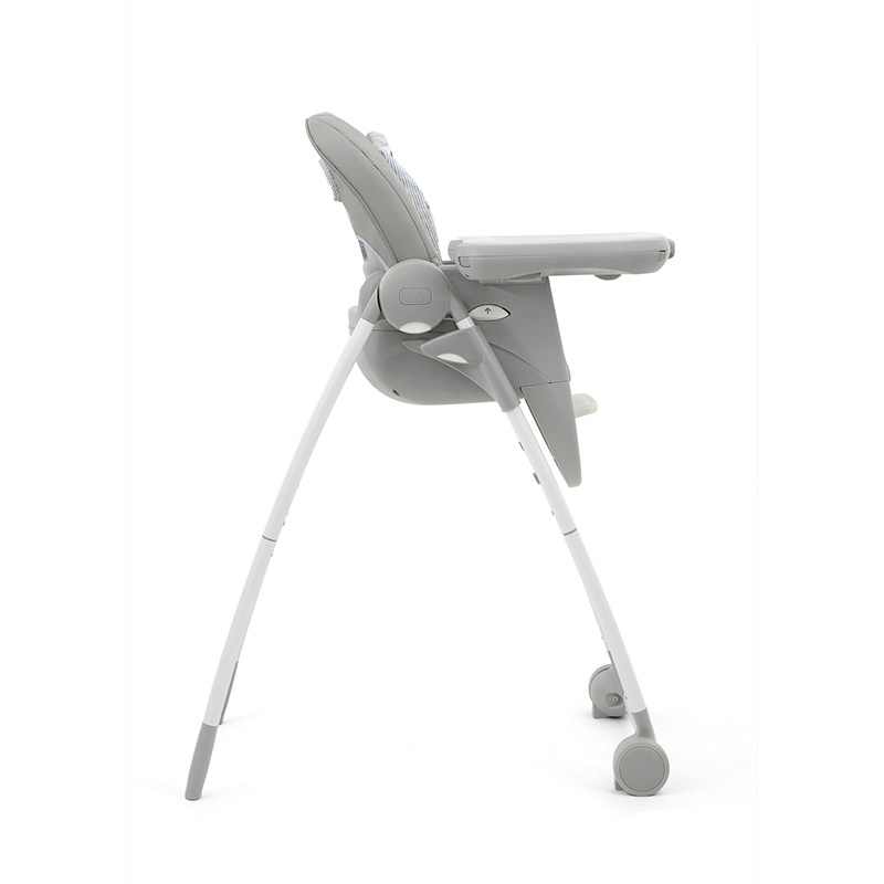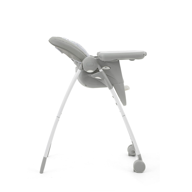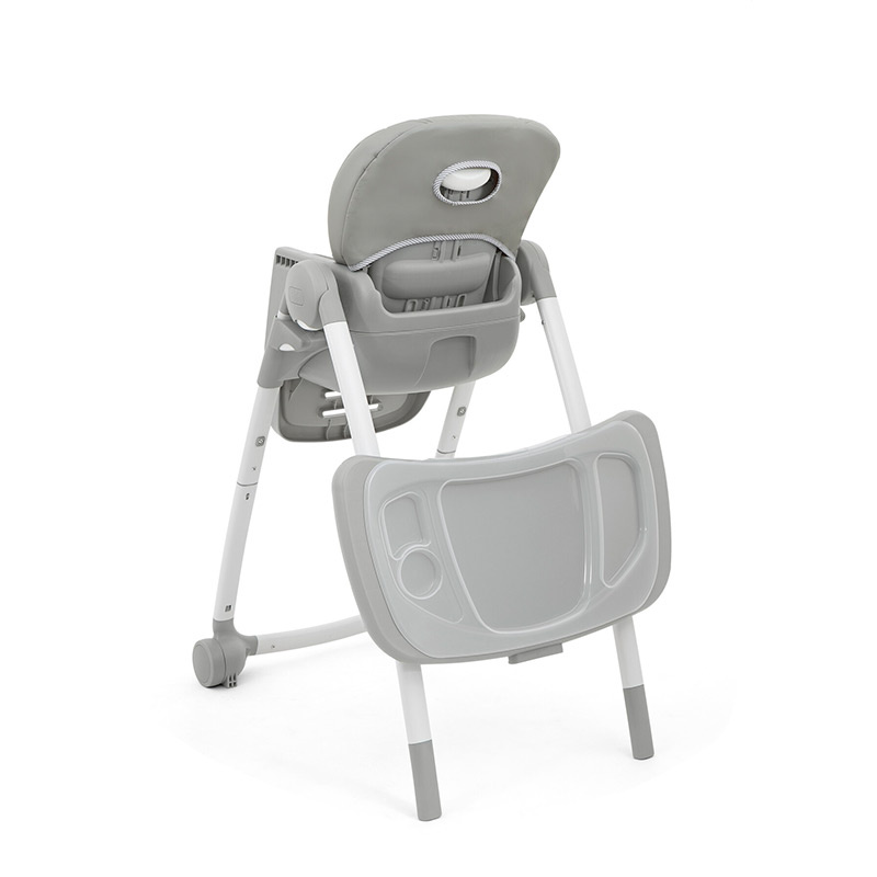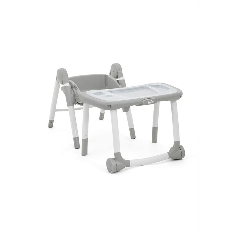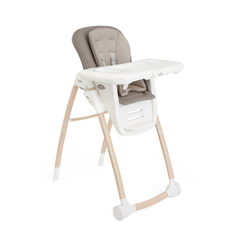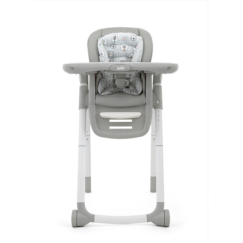 Krzesełko wyposażone jest w wygodne siedzisko z miękką, dodatkową wkładką, którą można wyjąć i wyprać. Oparcie regulowane jest w 3 pozycjach, dostosowuje się do aktualnego wieku dziecka. 5-punktowe uprząż wewnętrzna zapewnia dodatkowe bezpieczeństwo i stabilność dziecka podczas karmienia lub zabawy. Duża tacka z miejscem na kubek jest regulowana w 3 pozycjach. Specjalna, zdejmowana nakładka zapewnia czystość i higienę, nadaje się do mycia w zmywarce. Jeżeli nie będzie potrzebna, możemy odwiesić ja na tylną część stelaża. Dla maksymalnego komfortu dziecka wysokość podnóżka można zmienić w 3 pozycjach. Duże koła umiejscowione na przednich nogach ułatwiają przemieszczanie się krzesełko Joie Multiply.