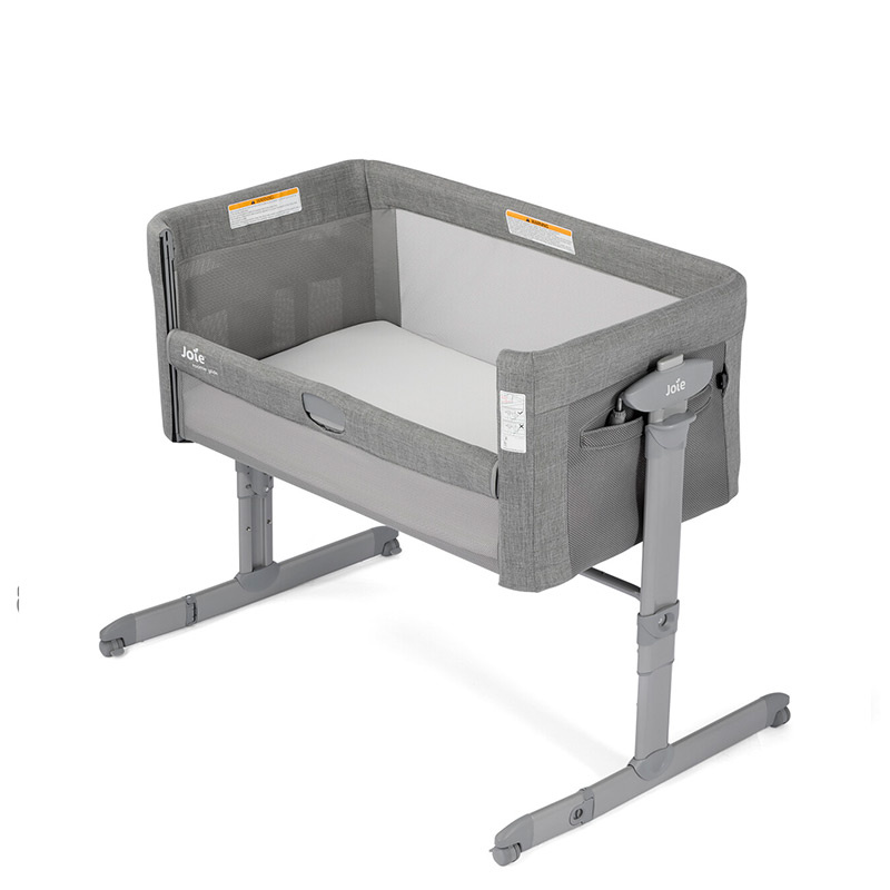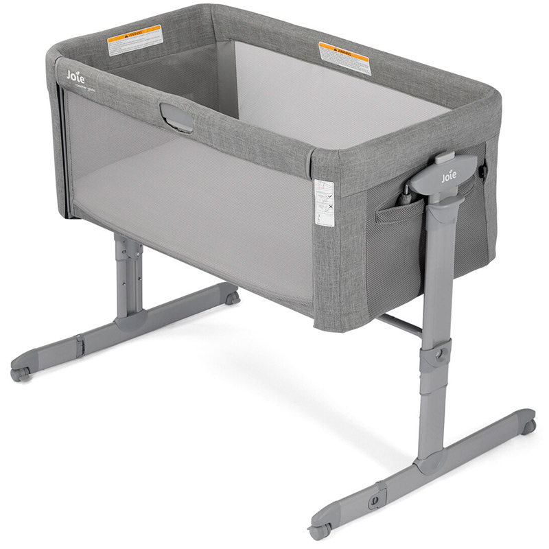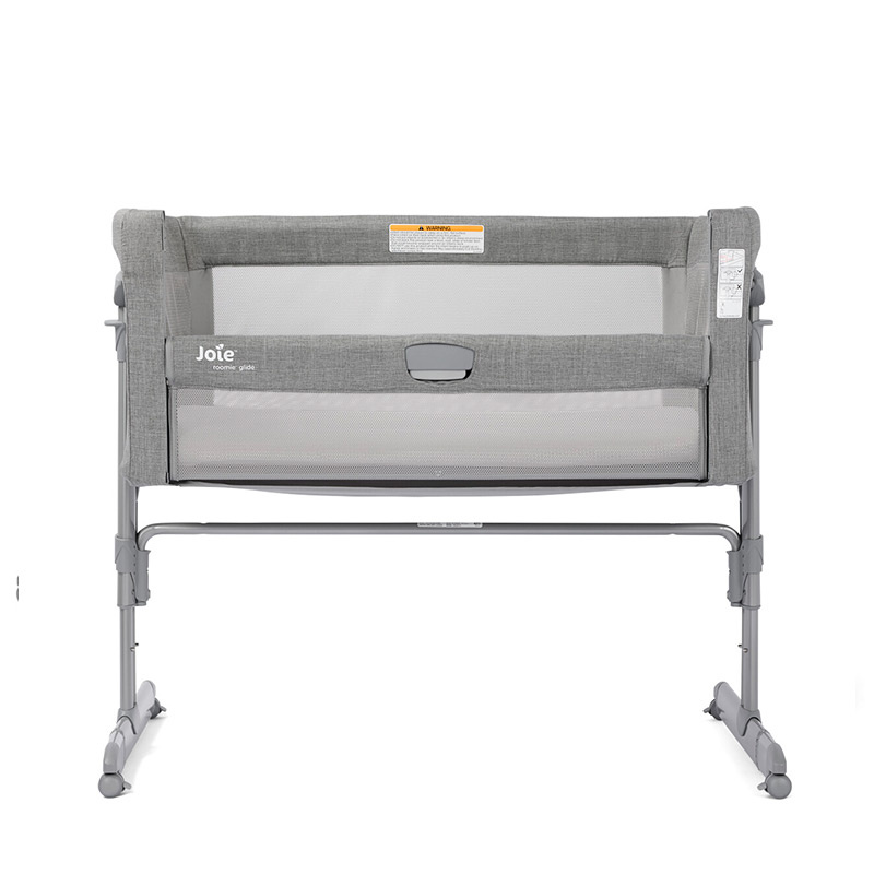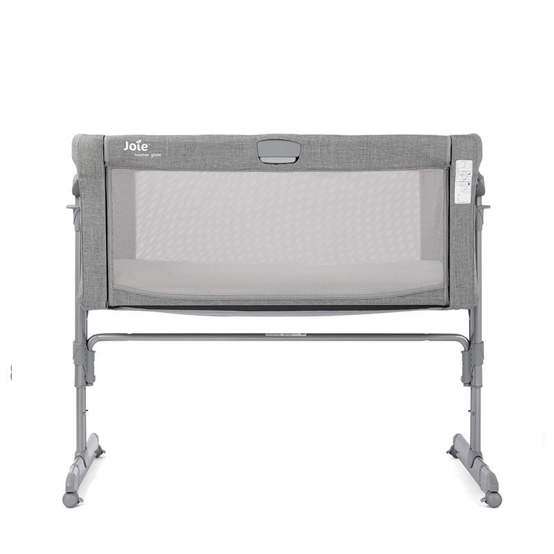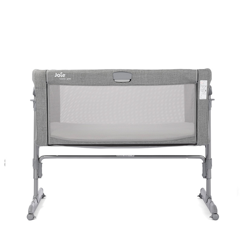 Łóżeczko podróżne Joie Roomie Glide. Przeznaczone dla dzieci od urodzenia do maksymalnej wagi 9 kg. Dzięki możliwości zmiany ułożenia nóg, łóżeczko Roomie Glide może pełnić funkcję samodzielnie lub jako łóżeczko dostawne. Kompaktowa konstrukcja daje możliwość połączenia z łóżkiem rodziców dzięki regulowanej wysokości ścianki bocznej oraz specjalnym paskom mocującym. Wysokość ścianki bocznej regulujemy w 2 pozycjach. Dodatkowo całe łóżeczko posiada 11-stopniową regulację wysokości, dzięki czemu jeszcze prościej dostosuje się do potrzeb rodziców. Funkcja podniesienia tylko jednej części łóżeczka jest niezwykle przydatna w czasie przeziębienia, ułatwiając dziecku oddychanie. Boczne ścianki łóżeczka Roomie Glide posiadają siateczkowe okienka, które ułatwiają obserwację dziecka i zapewniają komfortowy przewiew. Roomie Glide wyposażony jest w zintegrowane koła, ułatwiające mobilność. Łóżeczko składa się do kompaktowych rozmiarów, a dzięki dołączonej torbie transportowej łatwo się je przenosi i przechowuje. W zestawie znajduje się wygodny materacyk.