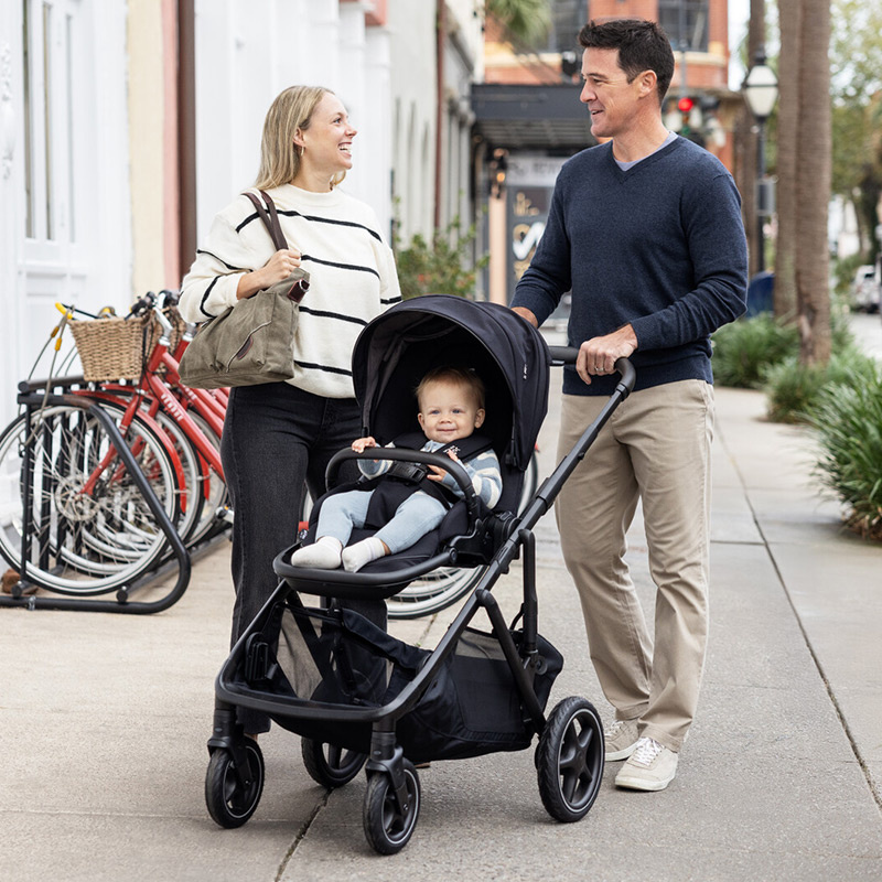 Dwukierunkowe siedzisko z innowacyjnym systemem Flex z amortyzacją sprężynową zapewni komfort i płynność jazdy w każdym terenie. Wózek Versiti umożliwia regulację wysokości siedziska (lub kupowanej oddzielnie gondoli) w 3 pozycjach. Oparcie regulowane jest w 4 poziomach, do pozycji leżącej, zapewniając najwyższy komfort w trakcie spacerów. W połączeniu z regulowanym  w 2 pozycjach podnóżkiem oferuje dużą powierzchnię do odpoczynku. Duża budka z filtrem UPF50+ i daszkiem przeciwsłonecznym jest rozszerzana o dodatkowy panel. W górnej części budki znajduje się siateczkowe okienko wentylacyjne do podejrzenia dziecka. 5-punktowa uprząż wewnętrzna wyposażona jest w miękkie osłonki SoftTouch oraz magnetyczna klamra AutoClick która ułatwia i przyspiesza bezpieczne zapięcia dziecka w wózku.