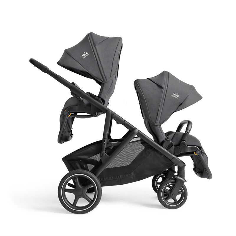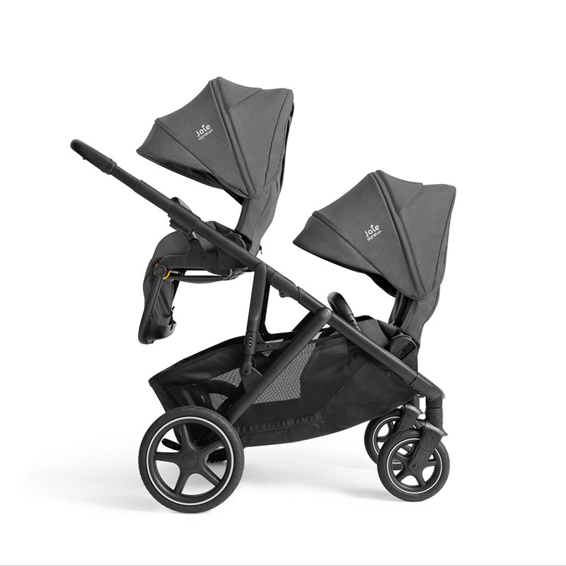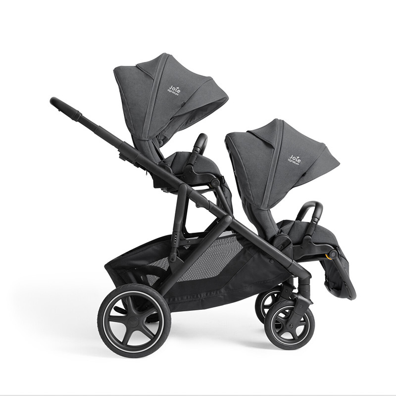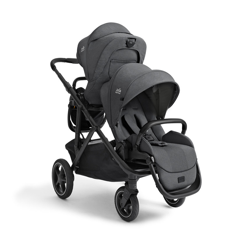 Joie Versiti, wszechstronny wózek z wieloma możliwościami konfiguracji w wersji rok po koku z dwoma siedziskami. Siedziska montowane są na stelażu w różnych kierunkach w zależności od potrzeby rodziców, przodem lub tyłem do kierunku jazdy. Przeznaczony jest dla dzieci od urodzenia do maksymalnej wagi 22 kg na każde siedzisko. Stelaż składa się na płasko wraz z wpiętym siedziskiem spacerowym zarówno przodem, jak i tyłem do kierunku jazdy. Wózek posiada wysokiej jakości gumowe koła wypełnione pianką z technologią PunctureProof, zapobiegającą przebiciu. Przednie koła są skrętne z możliwością zablokowania do jazdy na wprost, dzięki czemu pokonywanie przeszkód na spacerze jest niezwykle proste. Amortyzacja na każde koło z osobna gwarantuje płynną jazdę na każdym terenie. Dodatkowa amortyzacja stelaża jeszcze bardziej podnosi komfort dziecka na spacerze. Duży koszyk na zakupy w stelażu pomieści wszystkie niezbędne na spacerze akcesoria. Rączka pokryta ekoskórą ma możliwość teleskopowej regulacji wysokości w zależności od potrzeb. Hamulec typu ShoeSaver umieszczony przy prawym kole działa szybko na zasadzie jednego naciśnięcia. Wypinany obustronnie pałąk zapewnia dziecku bezpieczeństwo.