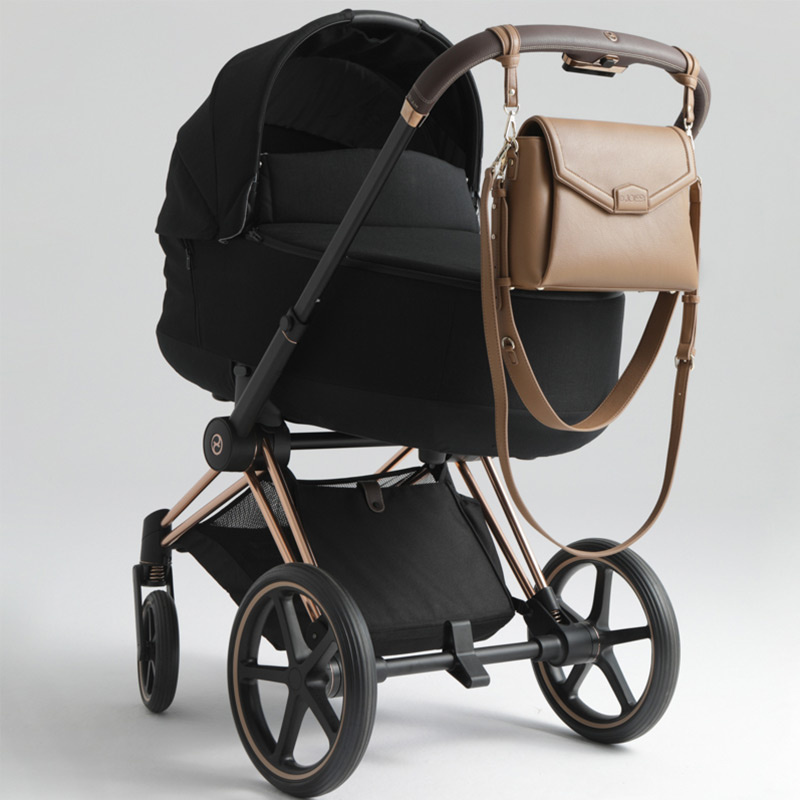 Joissy MIDI, torebka crossbody i organizer do wózka dla Mamy. Dzięki regulowanemu paskowi można nosić ją klasycznie na ramieniu lub odpiąć pasek i trzymać w ręce. Jest też możliwość zawieszenia torby na rączce niemal każdego wózka dzięki regulowanym zaczepom. Wykonana jest z wysokiej jakości eko skóry i wodoodpornej podszewki.