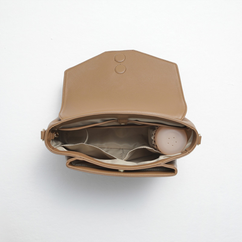 Stylowa torebka zapinana jest na dwa mocne magnesy oraz umożliwia regulacje zapięcia zależnie od wypełnienia. Torba MIDI posiada łącznie 8 kieszeni wewnątrz. Poza pojemną komorą główną znajduje się tam kieszeń z miejscem na butelkę, wilgotne chusteczki i pieluszki. Przegródka na dokumenty lub portfel zamykane jest suwakiem.