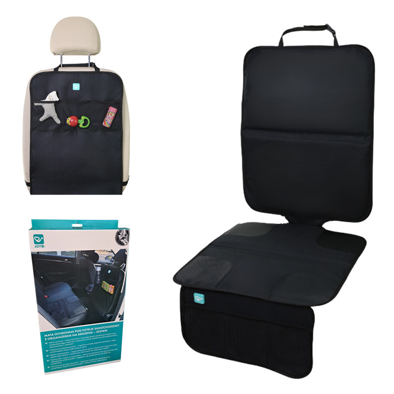 Joybi Mata pod fotelik z organizerem, praktyczny zestaw dla rodziców podróżujących z dzieckiem. Mata jest odpowiednia dla fotelików montowanych zarówno przodem i tyłem do kierunku jazdy. Organizer zawiera praktyczne kieszenie na napoje, zabawki, książeczki, przybory czy akcesoria podróżne.