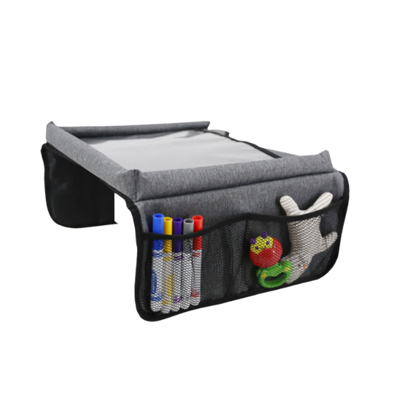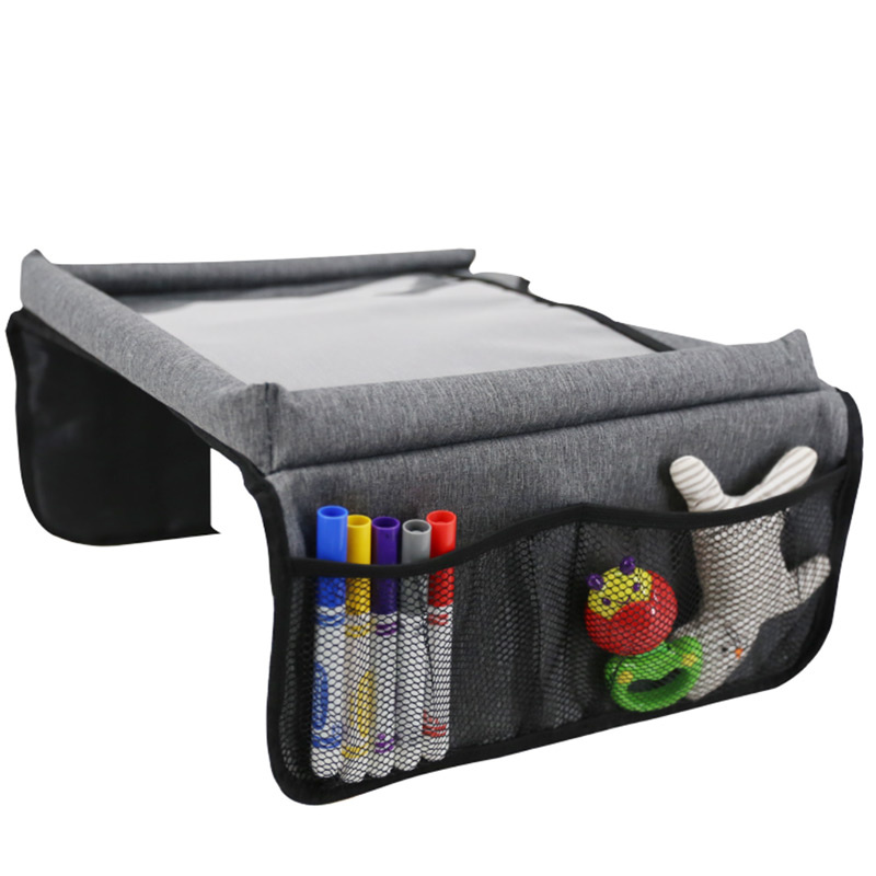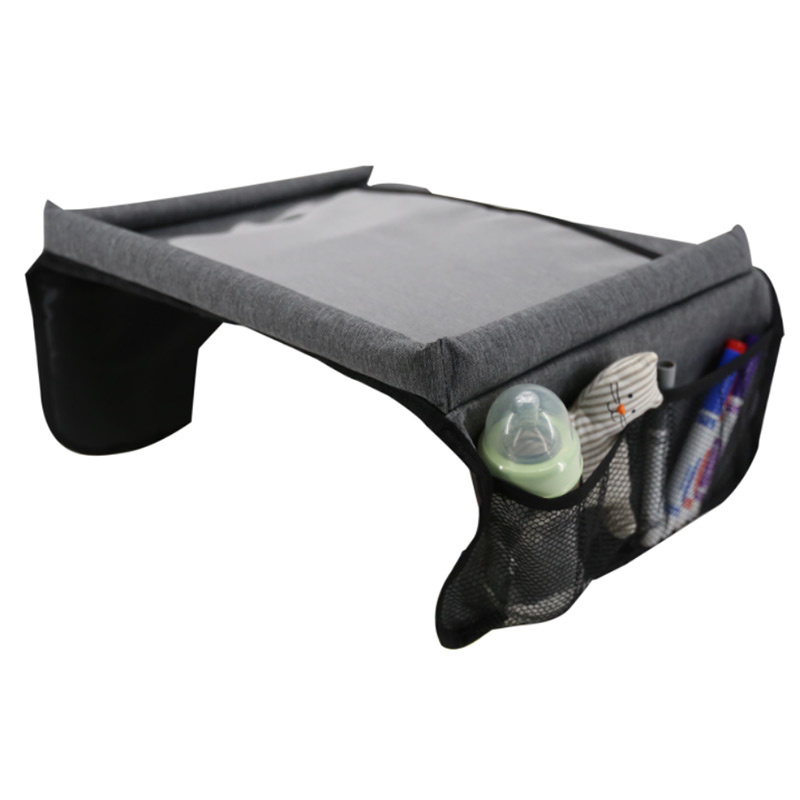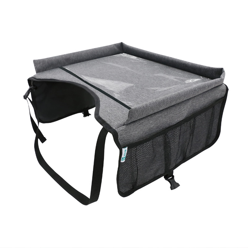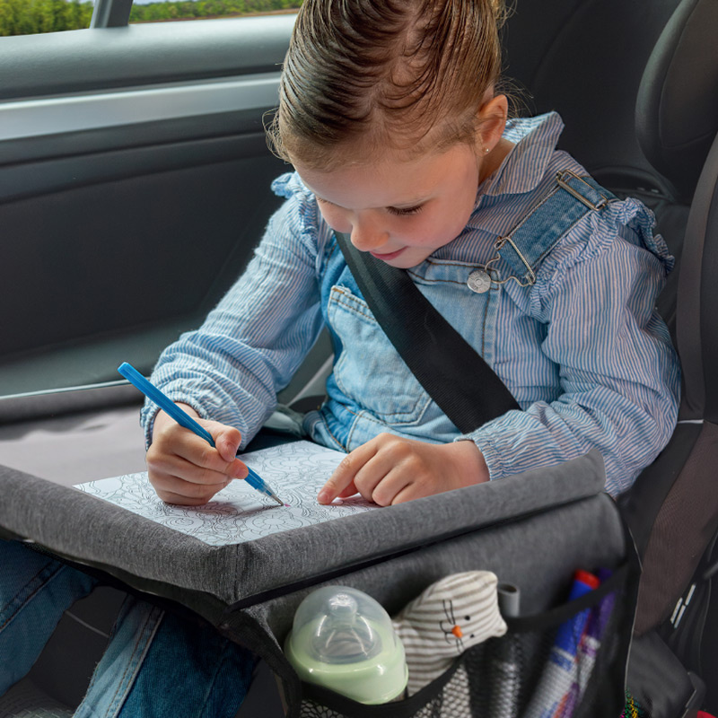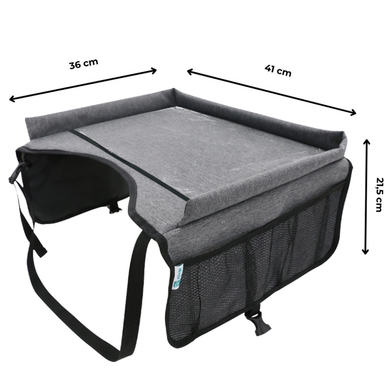 Joybi Uniwersalny stolik podróżny. Wykonany z materiału oxford jest wodoodporny i łatwy w czyszczeniu. Wystarczy rozłożyć go na kolanach dziecka i przypiąć paskiem do fotelika aby cieszyć się wszystkimi możliwościami, które oferuje. Stolik sprawdzi się idealnie podczas rysowania, czytania, układania puzzli lub jedzenia posiłków. Stabilna konstrukcja oraz podwyższone krawędzie zapewnia bezpieczeństwo, bez ryzyka zsunięcia się umieszczonych na nim przedmiotów. Cztery siatkowane kieszenie po bokach zapewniają dodatkowe miejsce do przechowywania.