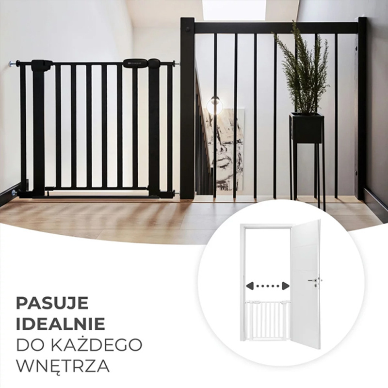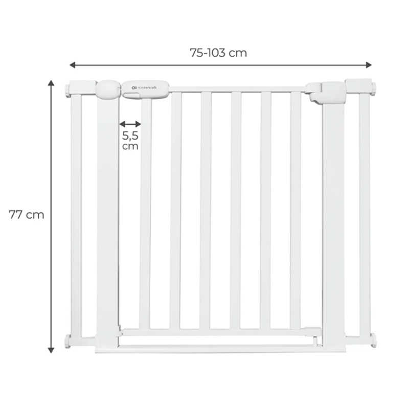 Kinderkraft Bramka zabezpieczająca Lock&Go. Uniwersalne rozwiązanie do zabezpieczenia drzwi, schodów i innych przejść. Regulacja szerokości w zakresie 75-103 umożliwia skuteczny montaż. Samo przytwierdzenie bramki odbywa się szybko i bez wiercenia. Jest też bardzo prosta w użytkowaniu. Niska dolna belka Flat Step minimalizuje ryzyko potknięcia. Jest to szczególnie ważne przy zabezpieczaniu schodów. Bramka ma podwójne zabezpieczenie zamknięcia Double Lock, którego nie jest w stanie pokonać dziecko, a rodzic otworzy przejście jedną ręką. Istnieje możliwść pozostawienia stale otwartego przejścia gdy zajdzie taka potrzeba bez konieczności demontażu całości. Keep Open System nie pozwoli bramce samej się zamknąć gdy będzie ona uchylona powyżej 90º. Poniżej tej wartości bramka samoczynnie się zamyka.