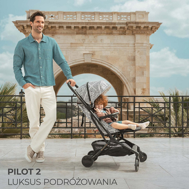 Kinderkraft Pilot 2 w wersji limitowanej z marką Bizuu. Wysokiej jakości tkaniny oraz unikalny styl nadadzą tapicerce elegancji i szyku. Kompaktowy i zwrotny wózek, idealny partner rodziców w podróży. Przeznaczony jest dla dzieci do maksymalnej wagi 22 kg. Stelaż zbudowany z lekkiego aluminium i waży 8 kg, co bardzo ułatwia jego transportowanie. Dzięki prostemu systemowi składania do kompaktowych rozmiarów jest idealny na podróż samolotem jako bagaż podręczny (po sprawdzeniu takiej możliwości w wybranych liniach lotniczych). Po złożeniu wózek stoi samodzielnie i jest gotowy do przenoszenia. Małe, piankowe koła są odporne na przebicie i całkowicie bezobsługowe. Przednie, skrętne ułatwiają manewrowanie. Centralny hamulec umieszczony jest na tylnej osi. Koszyk na zakupy pomieści 2 kg obciążenia.