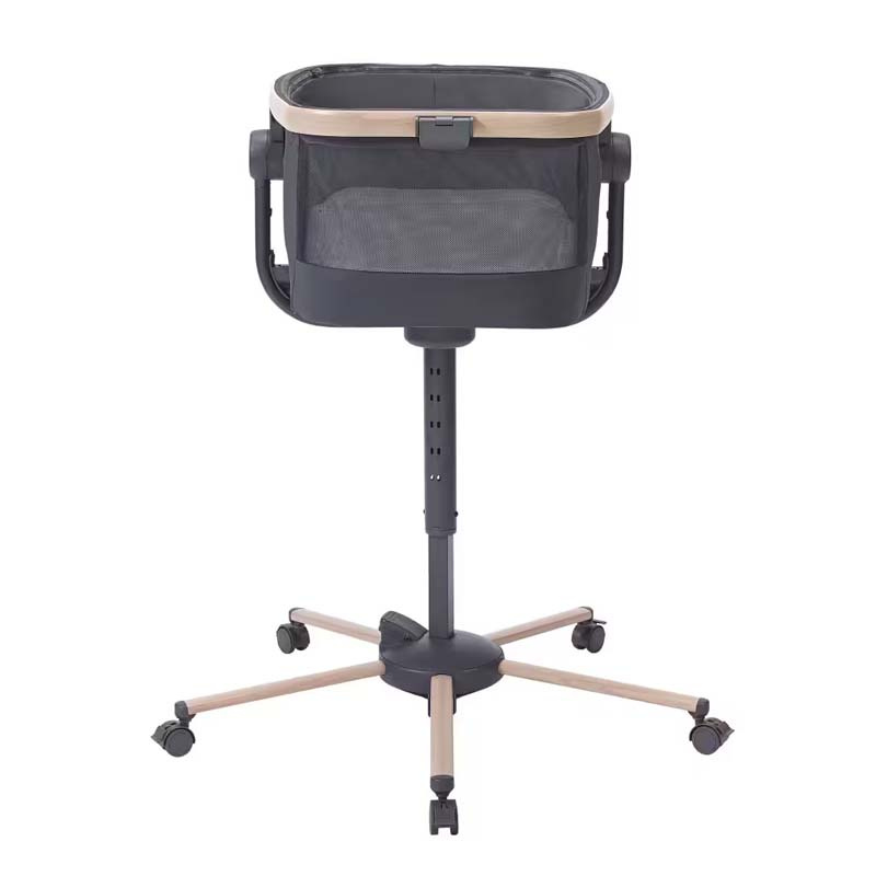 Maxi Cosi Alba mebel typu wszystko w jednym. Łączy w sobie funkcję gondoli, odchylanego fotelika i wysokiego krzesełka. Mobilna konstrukcja stelaża na kołkach pozwala na łatwe przemieszczanie w zależności od potrzeb rodzica. Dzięki przyciskowi w podstawie możemy łatwo dostosować wysokość urządzenia.
