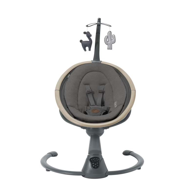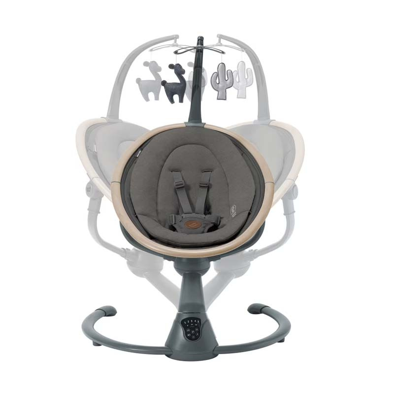 Cassia wyposażona jest w miękką wkładkę i 3-punktową uprząż, dzięki czemu dziecko bezpiecznie i komfortowo utrzymuje się na miejscu. Dwie pozycje odchylenia oparcia pozwolą dostosować się do potrzeb dziecka. Huśtawka posiada 5 prędkości kołysania i 12 łagodnych dźwięków natury i melodii, co pozwoli uspokoić dziecko. Automatyczne wykrywanie ruchu dziecka rozpoczyna kołysanie w momencie gdy dziecko staje się niespokojne. Wszystkie te funkcje są dostępne na intuicyjnym panelu sterowania z ekranem dotykowym. Funkcja pełnego obrotu 360º pozwoli rodzicom na wygodną obserwację dziecka w trakcie wykonywania prac domowych lub odpoczynku.
