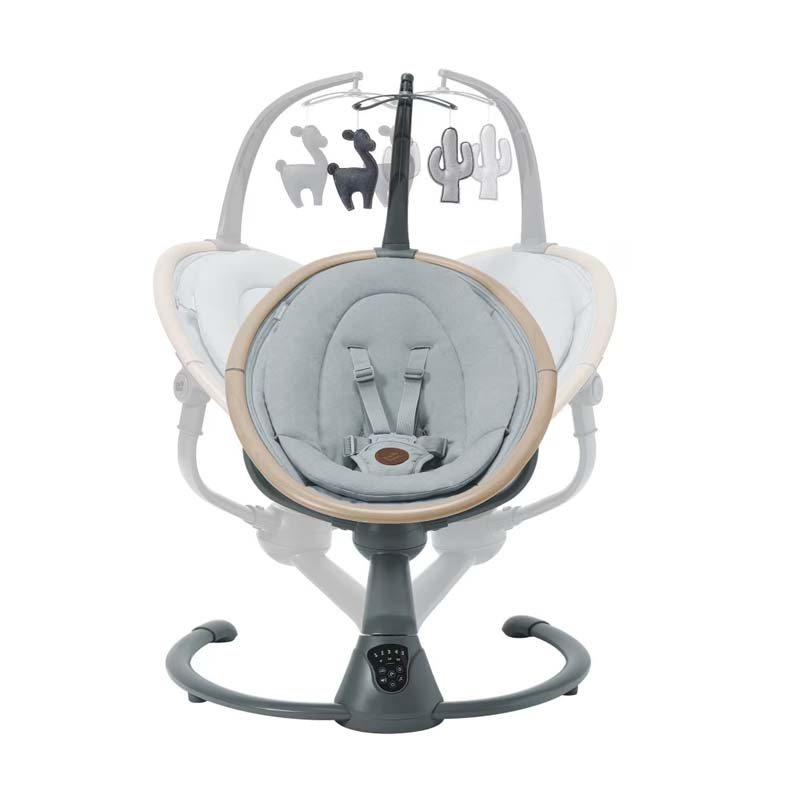 Cassia wyposażona jest w miękką wkładkę i 3-punktową uprząż, dzięki czemu dziecko bezpiecznie i komfortowo utrzymuje się na miejscu. Dwie pozycje odchylenia oparcia pozwolą dostosować się do potrzeb dziecka. Huśtawka posiada 5 prędkości kołysania i 12 łagodnych dźwięków natury i melodii, co pozwoli uspokoić dziecko. Automatyczne wykrywanie ruchu dziecka rozpoczyna kołysanie w momencie gdy dziecko staje się niespokojne. Wszystkie te funkcje są dostępne na intuicyjnym panelu sterowania z ekranem dotykowym. Funkcja pełnego obrotu 360º pozwoli rodzicom na wygodną obserwację dziecka w trakcie wykonywania prac domowych lub odpoczynku.