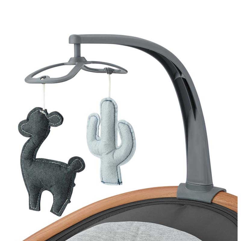Huśtawka Maxi Cosi Cassia działa poprzez podłączenie do sieci lub za pomocą wbudowanego akumulatorka.