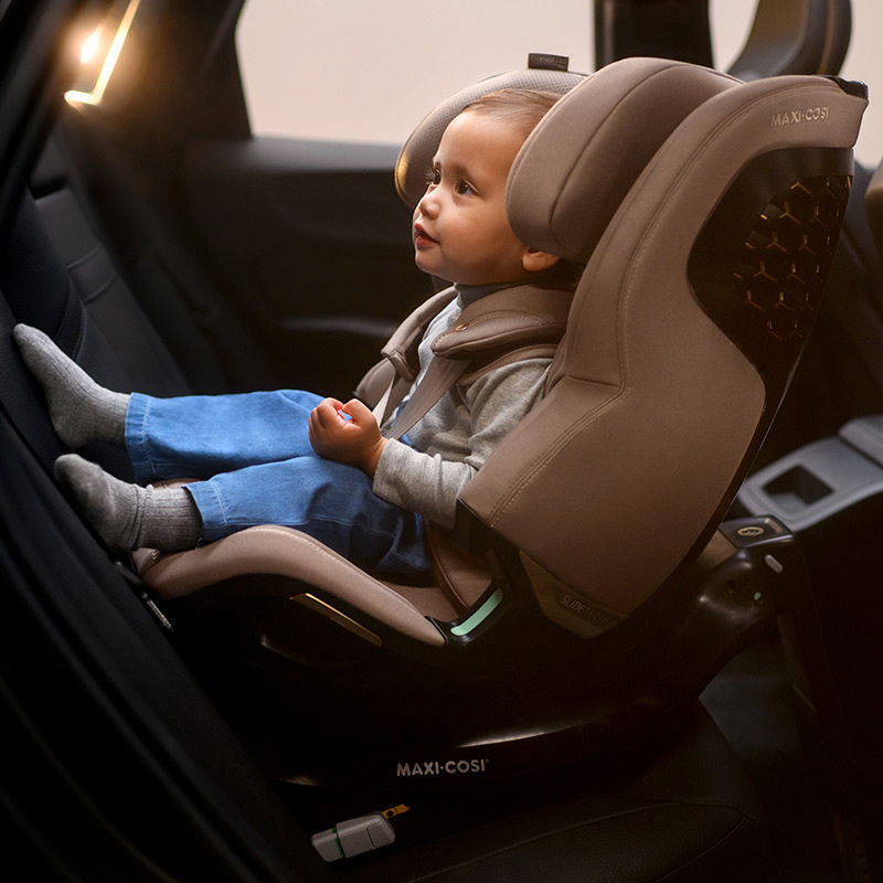 Maxi Cosi Emerald 360 Pro, jeden fotel na całe dzieciństwo. Przeznaczony jest dla dziecka od urodzenia do 150 cm wzrostu i maksymalnie 36 kg wagi. Na początku używania (40-105 cm wzrostu) montowany jest za pomocą systemu isofix i nogi wspierającej z możliwością pełnego obrotu 360º, a dziecko wpięte jest w 5-punktową uprząż wewnętrzną z wkładką wypłycającą. Wkładka jest demontowana od momentu uzyskania przez dziecko 60-75 cm wzrostu. Prosty mechanizm pozwala obrócić bazę jedną ręką, co ułatwia posadzenie dziecka w foteliku oraz prawidłowe zapięcie pasów. Rewolucyjna technologia dodatkowego wysuwania fotela na bazie SlideTech zapewnia łatwe i szybkie włożenie i wyjęcie dziecka z fotelika bez szarpania i bólu placów. Emerald 360 Pro daje dziecku możliwość podróżowania tyłem do kierunku jazdy do osiągnięcia 105 cm wzrostu. Istnieje możliwość obrócenia fotela z pasami wewnętrznymi przodem do kierunku jazdy od 75 cm wzrostu.