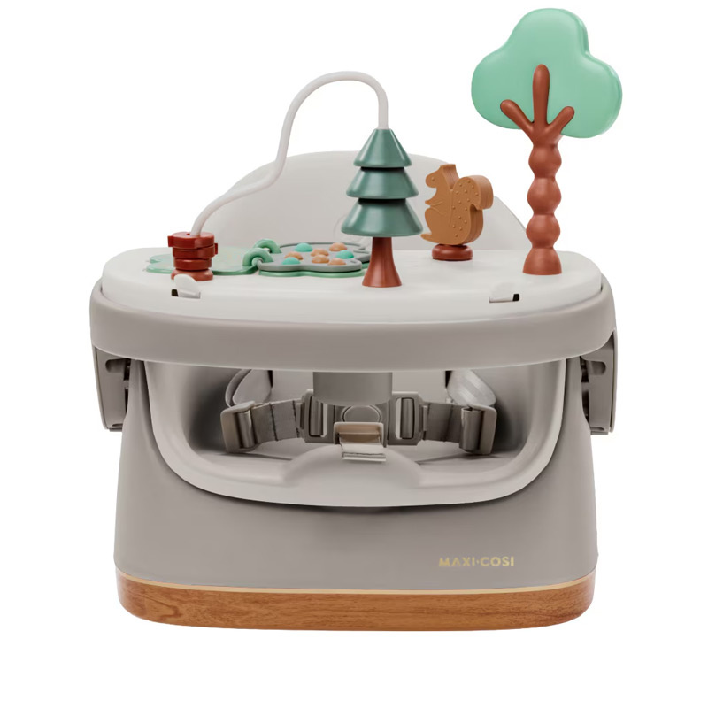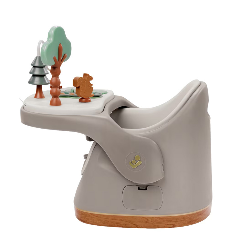 Maxi Cosi Jay Plus, funkcjonalne krzesełko 3w1. Przeznaczone dla dziecka od 6 miesiąca życia do maksymalnej wagi 15 kg. W zależności od wieku może spełniać różne role. Może być wolnostojącym siedziskiem podłogowym, przymocowanym do krzesła miejscem do zabawy lub krzesełkiem do karmienia. Wygodne, wyprofilowane siedzisko z pasami wewnętrznymi zapewnia dziecku komfort i utrzymuje je w bezpiecznej pozycji. Wyjmowana, regulowana w dwóch pozycjach tacka jest nieocenionym wsparciem w trakcie zabawy lub podawaniu posiłków. W połączeniu z dodatkową nakładką edukacyjną zapewni dziecku godziny dobrej zabawy.