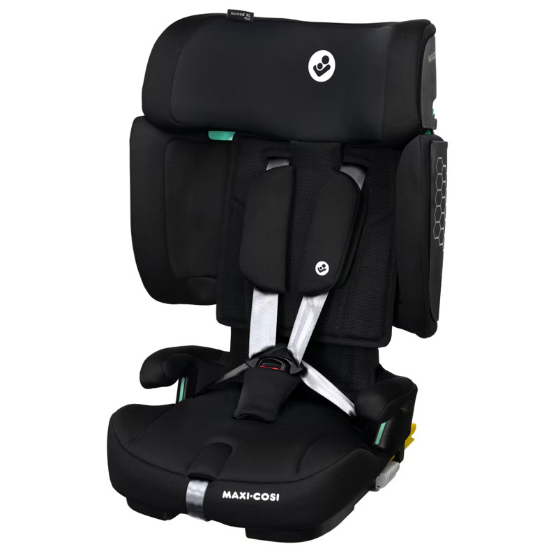 Fotelik Maxi Cosi Nomad XL Plus, kompaktowy fotel na lata. Przeznaczony jest dla dzieci od 76 do 150 cm wzrostu. Montowany jest w samochodzie za pomocą systemu isofix i pasa top tether w przedziale 76-100 cm oraz systemem isofix i pasem samochodowym w przedziale 100-150cm wzrostu dziecka. Dziecko przewożone jest przodem do kierunku jazdy w pasach wewnętrznych do 100 cm wzrostu a następnie w 3-punktowym pasie samochodowym do 150 cm. Nomad XL Plus posiada 5 pozycji odchylenia siedziska, zapewniając jeszcze większy komfort dziecka w czasie obserwacji drogi lub drzemki. Zagłówek jest komfortowo wyprofilowany i regulowany do aktualnego wzrostu dziecka w 13 pozycjach. System ochrony bocznej G-CELL zapewnia wysoką ochronę i pochłania energię podczas uderzenia. Mała szerokość fotela (44cm) umożliwia zamontowanie nawet trzech fotelików na tylnej kanapie. Maxi Cosi Nomad XL Plus składa się do kompaktowych rozmiarów, dzięki czemu ułatwia przekładania między samochodami i transportowanie.