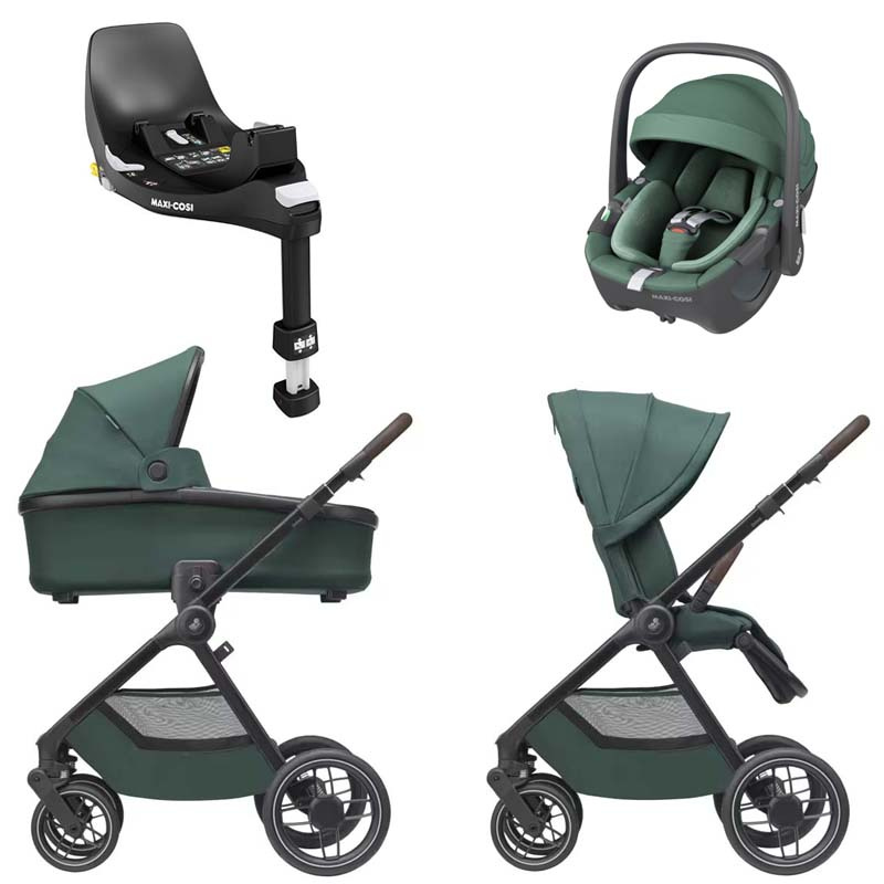 Maxi Cosi Oxford Essential Green zestaw 4w1 z fotelikiem Pebble 360 i bazą FamilyFix 360