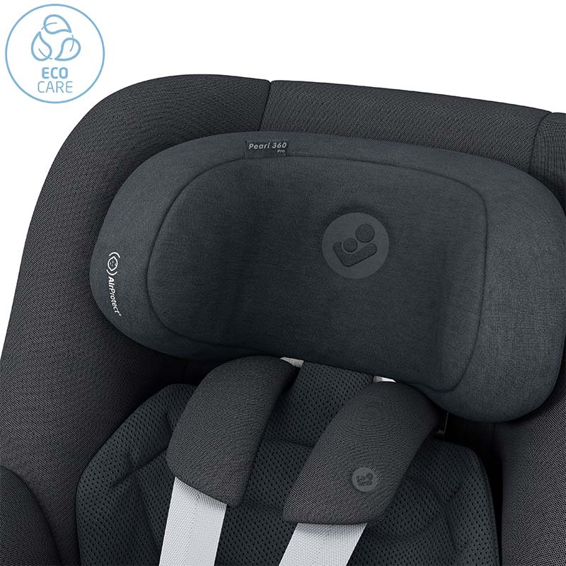 Maxi Cosi Pearl 360 Pro jest niezwykle komfortowym rozwiązaniem. Wbudowane oddychające panele ClimaFlow zapewniają prawidłową cyrkulację powietrza wewnątrz i przeciwdziałają przegrzaniu dziecka. Został wykonany z wysokiej klasy oddychających tkanin DuaLife w dwóch odcieniach zdobionych eleganckim haftem wykonanym wyjątkowo mocnymi nićmi oraz tkanin Eco Care w 100% pochodzących z recyklingu. W przypadku zabrudzenia można je prać w temperaturze max 30ºC. Pearl 360 Pro posiada certyfikat AGR, niezależnego stowarzyszenia lekarzy, poświadczający, że są one przyjazne dla kręgosłupa i pleców.