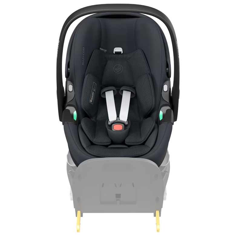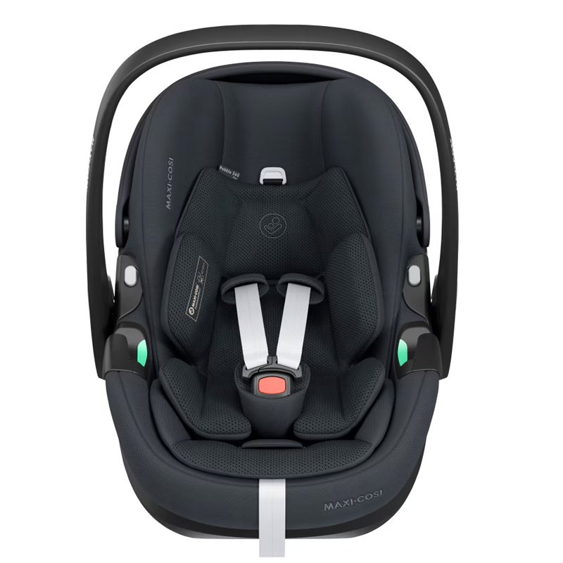 Fotelik Maxi Cosi Pebble 360 Pro2. Przeznaczony jest dla noworodków i dzieci do maksymalnej wagi 13 kg i 87cm wzrostu. Montowany jest tyłem do kierunku jazdy za pomocą 3-punktowego pasa samochodowego lub na obrotowej bazie isofix (do kupienia oddzielnie). W połączeniu z bazą FamilyFix 360 Pro pozwala łatwo blokować, przesuwać i obracać fotelik. Pebble 360 Pro2 zapewnia wysoki poziom komfortu, zarówno w trakcie drzemki w podróży samochodem jak i wózkiem. Siedzisko można ustawić w trzech pozycjach w tym w pozycji leżącej, w każdej możliwej konfiguracji montażu (na bazie, pasami i na stelażu wózka). Wkładka dla noworodków zapewnia komfort, a jednocześnie umożliwia prawidłowe ułożenie ciała i odpowiednią ilość miejsca dla dziecka.