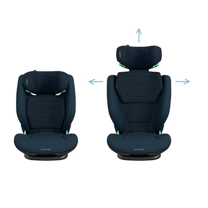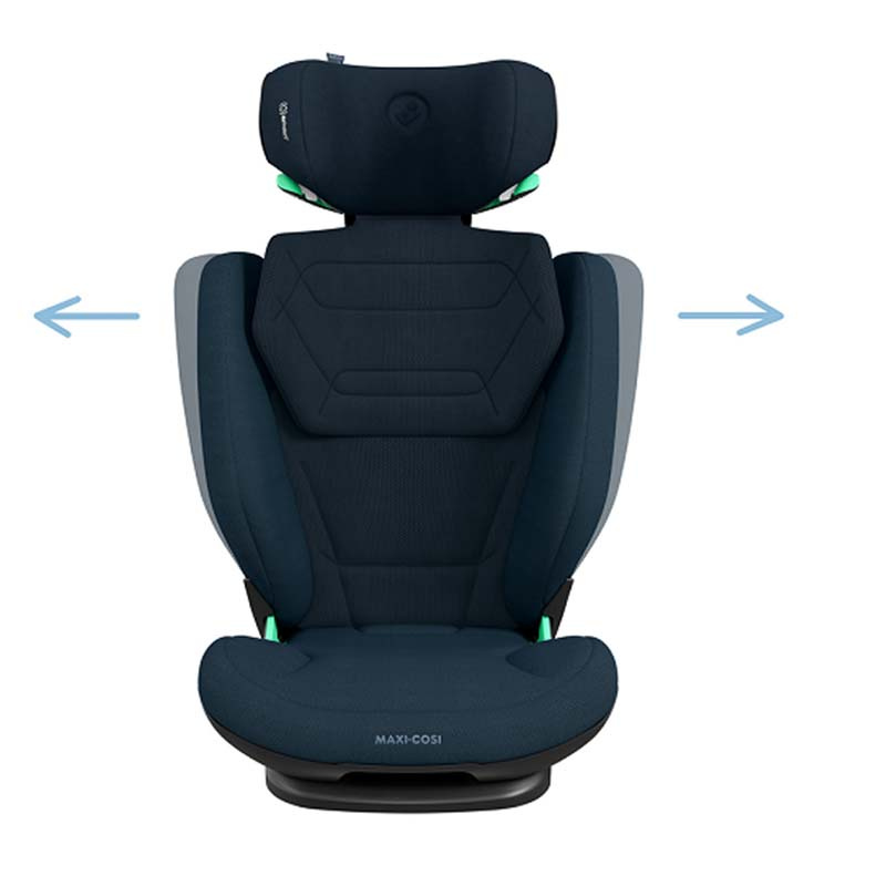 Fotelik Maxi Cosi RodiFix Pro 2 i-Size, udoskonalona wersja popularnego poprzednika. Przeznaczony jest dla dzieci od 100 do 150 cm wzrostu. Montowany jest w samochodzie za pomocą pasa samochodowego i systemu isofix lub samym pasem samochodowym. Wersja Rodifix Pro 2 posiada teraz 3 stopnie regulacji odchylenia siedziska, zapewniając jeszcze większy komfort dziecka w czasie obserwacji drogi lub drzemki. Zagłówek jest komfortowo wyprofilowany i regulowany do aktualnego wzrostu dziecka. Dodatkowo jego wnętrze zawiera opatentowany system ochrony bocznej AirProtect. Zmniejsza ryzyko urazu głowy nawet o 20% i dodatkowo poprawia komfort dziecka. System ochrony bocznej G-CELL zapewnia wysoką ochronę i pochłania energię podczas uderzenia. Maxi Cosi RodiFix Pro 2 i-Size dostosowuje się do wieku i rozmiarów dziecka. Podczas regulacji zagłówka zmienia się szerokość osłon bocznych zapewniając maksimum komfortu i wygody. Specjalne panele wentylacyjne ClimaFlow wspomagają cyrkulację powietrza, dzięki czemu zawsze zapewniają dziecku odpowiednią temperaturę. Tkaniny Eco Care pochodzą w 100% z recyklingu. Fotel RodiFix Pro 2 i-Size posiada konstrukcję umożliwiającą zamontowanie trzech fotelików na tylnej kanapie.