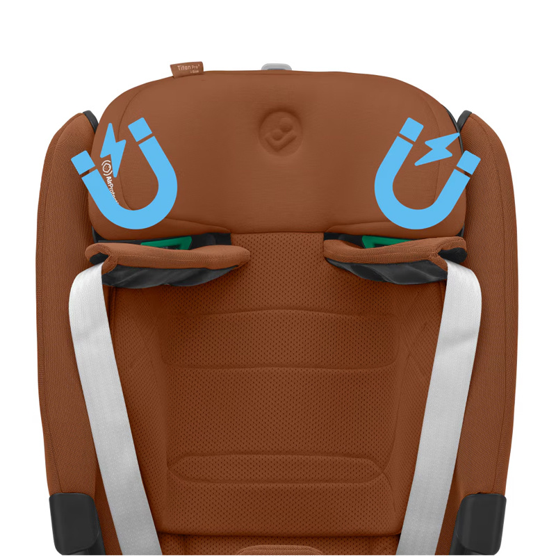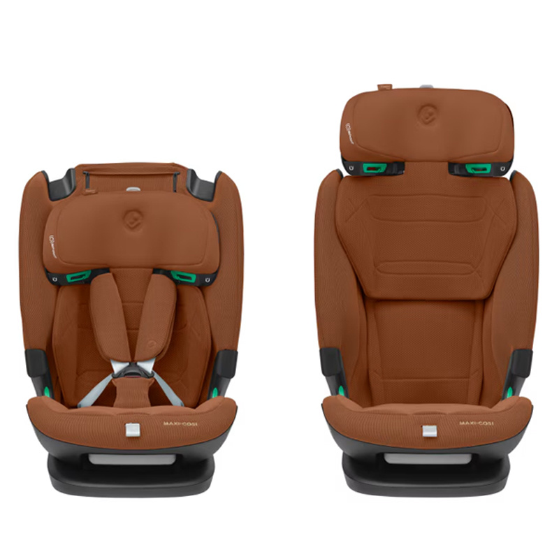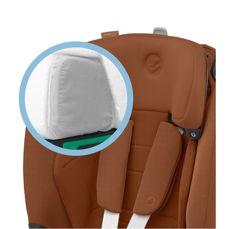 Fotelik samochodowy Titan Pro2 i-Size wystarczy na długo od około roku do 12. lat (76 - 150 cm; 12-36 kg). Przez cały okres użytkowania mocowany jest przodem do kierunku jazdy za pomocą zaczepów Isofix oraz pasa TOP Tether jako trzeci punkt mocujący. Gdy dziecko przekroczy 105 cm wzrostu wewnętrzne pasy można łatwo odczepić i dziecko zapinane jest w foteliku za pomocą pasa samochodowego. Fotelik Titan Pro2 i-Size ma możliwość odchylenia oparcia w czterech pozycjach, dzięki temu młodsze dziecko ma możliwość komfortowej drzemki podczas podróży. Pięciopunktowe wewnętrzne pasy zostały wyposażone w miękkie nakładki. Zagłówek regulowany jest aż w 15. pozycjach, dzięki czemu łatwo zawsze jest odpowiednio dopasowany do wzrostu dziecka. Fotel posiada dodatkową wkładką barkową zapewniającą komfort mniejszemu dziecku. Rozbudowany system wentylacji ClimaFlow zapewnia lepszą cyrkulację powietrza i dziecko mniej się poci podczas jazdy w foteliku. O bezpieczeństwo dziecka dba trzypunktowy, stabilny system mocowania, rozbudowana ochrona boczna fotelika C-Gell 2.0 ma za zadanie absorbować skierowane z różnych stron siły działające na fotelik. Zagłówek został wyposażony dodatkowe poduszki bezpieczeństwa Air Protect, które pochłaniają energię działająca na głowę i szyję dziecka, ale także poprawiają komfort i wygodę podczas podróży w foteliku Maxi Cosi Titan Pro2 i-Size.