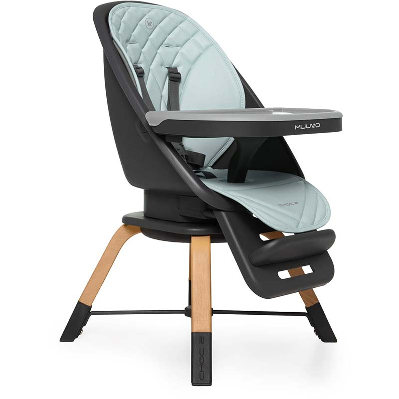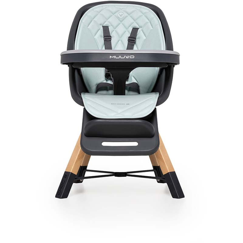 Krzesełko do karmienia Muuvo Choc 2 . Posiada możliwość obrotu siedziska 360º, dzięki temu łatwo i wygodnie można umieścić dziecko w krzesełku. Klasyczny design oraz eleganckie kolory sprawiają, że będzie pasowało do każdego wnętrza. Wygodny podnóżek podtrzymuje nóżki i jest regulowany w 3 pozycjach. Regulowany, niezależny blat pozwala maluszkowi na samodzielne jedzenie. Miękka wkładka z ekoskóry zapewnia dziecku maksimum komfortu w trakcie posiłku. Możliwość skrócenia nóg pozwala na przekształcenie krzesełka w wygodny fotelik dla starszych dzieci. Aby sprostać oczekiwaniom dzieci w Muuvo Choc 2 znajdują się pięciopunktowe pasy, które są wygodne i nie uciskają nawet podczas bardzo długiego posiłku. Wyjątkowo wygodne i szerokie siedzisko to niewątpliwe ogromny plus dla komfortu w trakcie posiłków. W krzesełku do karmienia zamontowano dwa blaty, a także wyjmowaną wkładkę, które sprawiają, że jego czyszczenie jest niesamowicie proste i szybkie. Szeroki rozstaw nóg, wykonanych z solidnego drewna sprawia, że można zostawić dziecko w krzesełku nie obawiając się, że się przechyli. Jednocześnie jego smukła konstrukcja sprawia, że doskonale wtapia się w wnętrze i nie rzuca w oczy, tworząc tym samym całość z pozostałymi krzesłami przy stole.