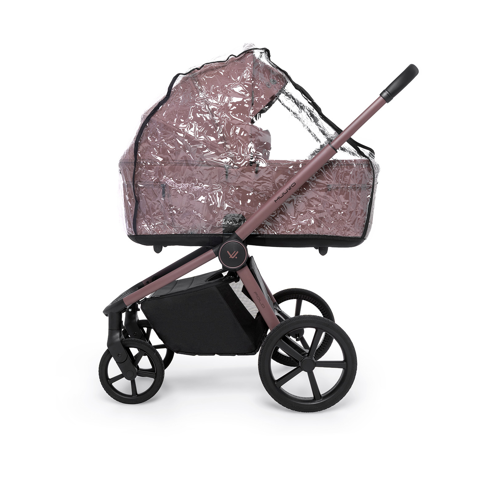 Najważniejszą cechą konstrukcji MUUVO Fold jest możliwość składania gondoli razem ze stelażem, co ułatwia przechowywanie i szybszy transport wózka. Wózek został wyposażony także w lekkie koła piankowe, które zapewniają dodatkową amortyzację antywstrząsową oraz lepszą przyczepność. W codziennym użytkowaniu przydaje się również pojemny kosz pod wózkiem o nośności do 10 kg.