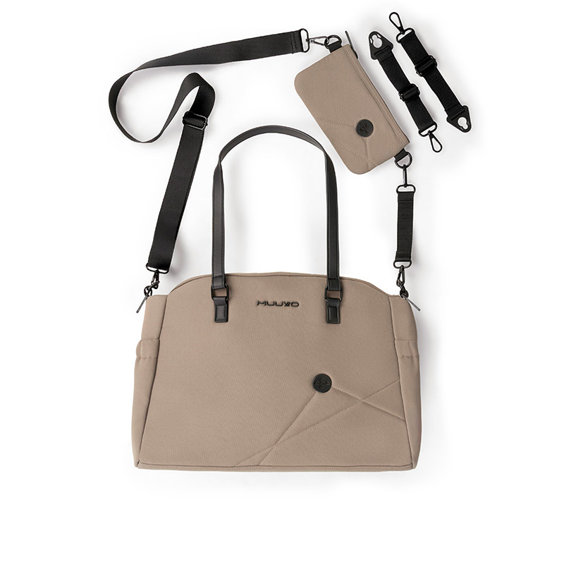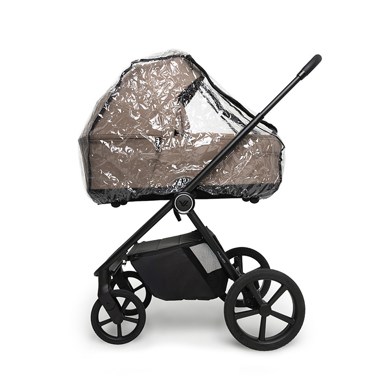 W zestawie z wózkiem Muuvo One znajdują się: uniwersalna moskitiera, folia przeciwdeszczowa, blenda przeciwsłoneczna do gondoli, okrycie na nóżki, torba z dodatkową saszetką na telefon, wkładka z pianki memory do siedziska oraz etui na smoczek.